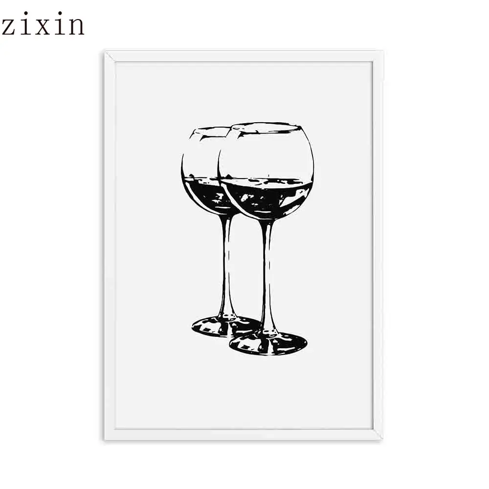 Картина на холсте с изображением питьевой воды, черно-белые Винные Бокалы