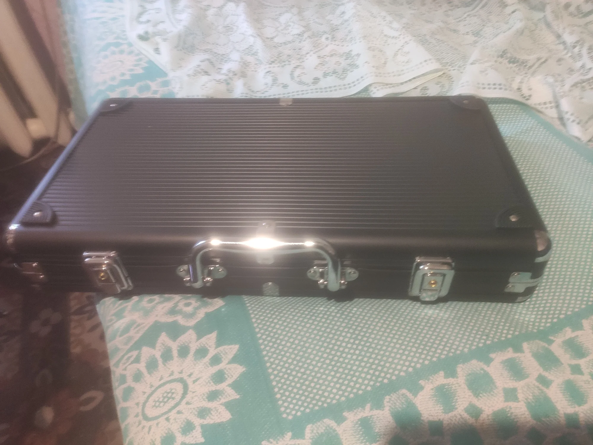 Крутейший чемодан, легкий, внешне очень стильный, достойный !!! Пришел с небольшой вмятиной, но прям с небольшой и на боку, но это мне, никоем образом, не испортило общего впечатления. Чемодан большой, 500 фишек, я не верно оценивал данный объем, теперь придется еще и фишки докупать )
