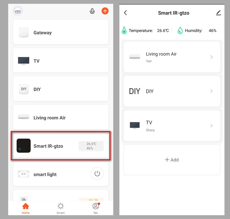 С помощью встроенного датчика вы можете узнать температуру и влажность в помещении в любое время. И в соответствии с их значениями, делайте последующую автоматизацию. Например, включите кондиционер, когда температура выше 26 ℃, и включите увлажнитель, когда влажность меньше 50%.