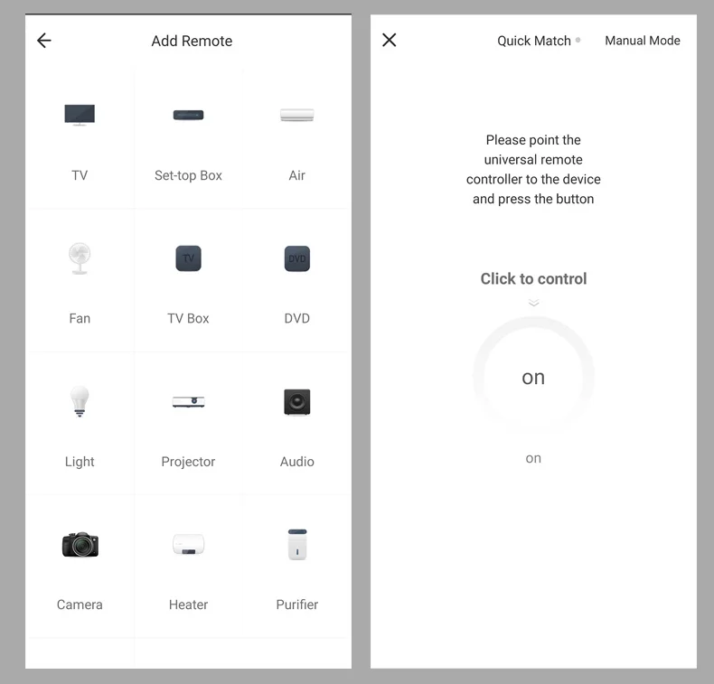 -Настройка кнопок в приложении Tuya Smart. Если ваша бытовая техника отсутствует в списке брендов или не поддерживается, вы можете использовать эту функцию для копирования ключевой функции оригинального пульта дистанционного управления в приложение. Примечание: «сделай сам» не поддерживает Голосовое управление