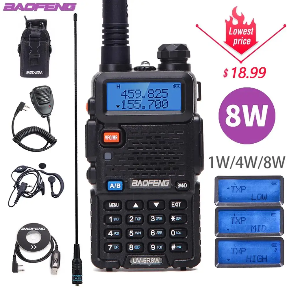 Baofeng UV-5R 8 вт высокий мощный VHFUHF большие расстояния двухстороннее радио иди и болтай Walkie Talkie CB Ham Портативный радио Pofung UV UV5R для охоты