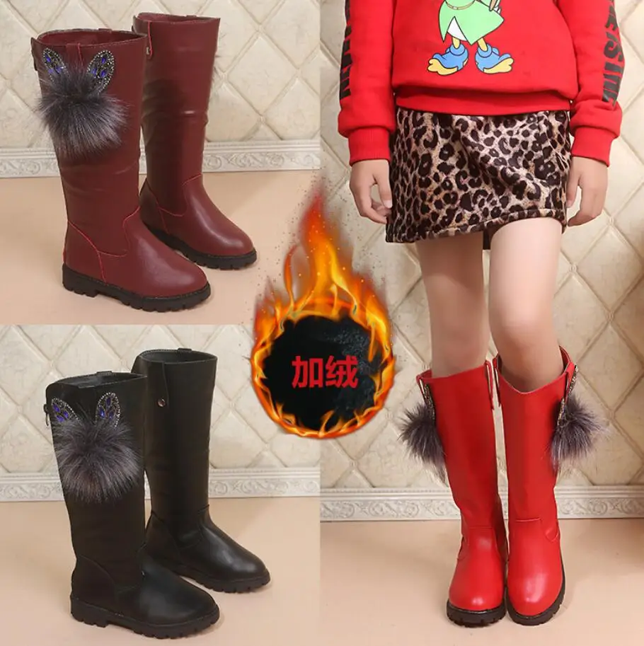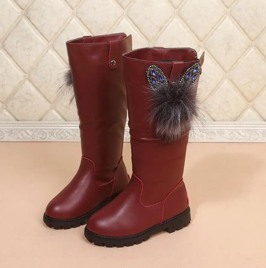 Сапоги детские кожаные, с плюшевым мехом, Осень-зима 2021