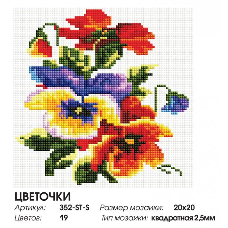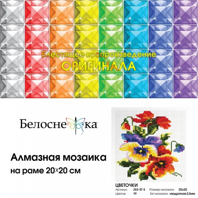 "Цветочки" Алмазная мозаика на подрамнике 20х20 см. Белоснежка. 352-ST-S