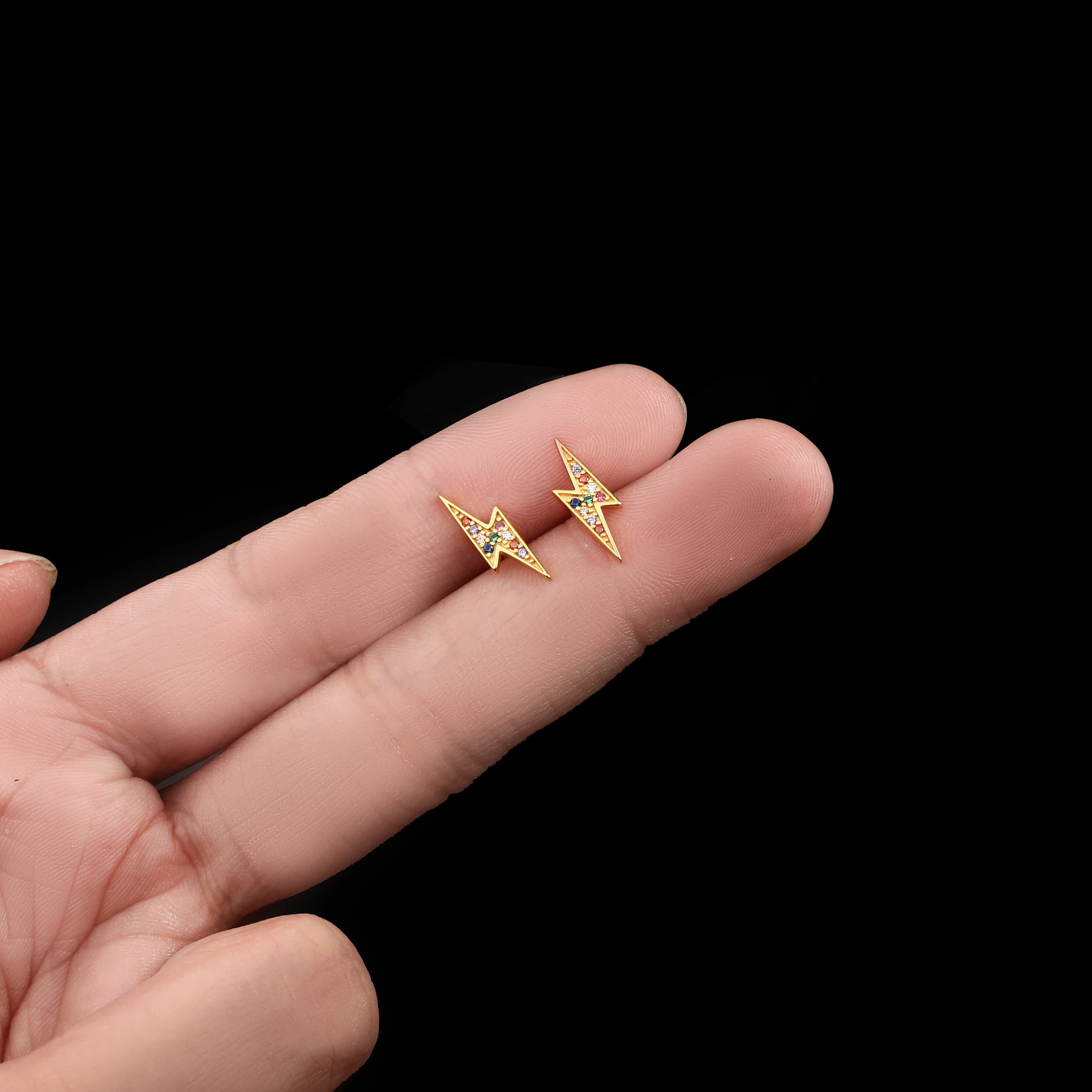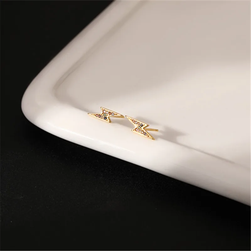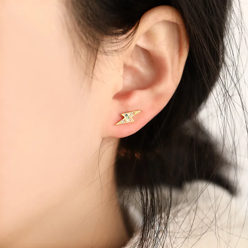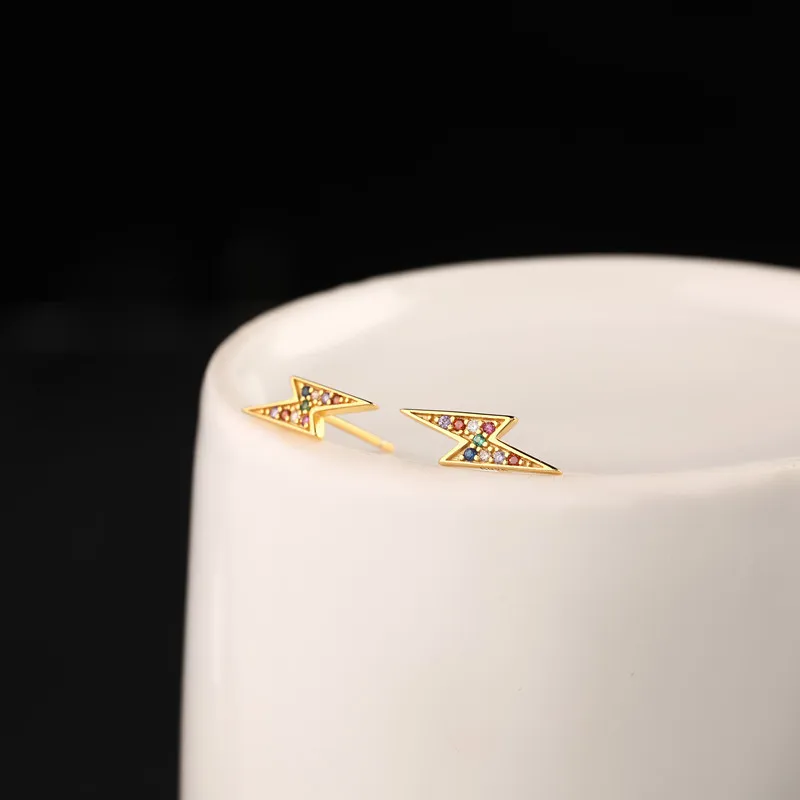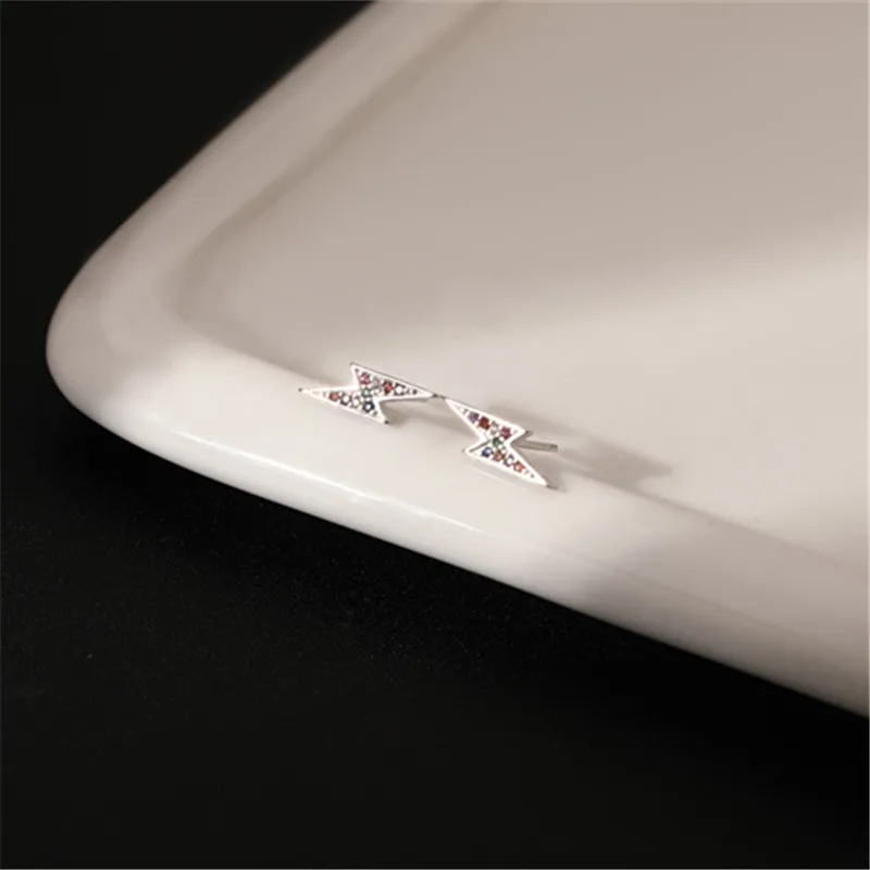 925 стерлингового серебра Французский Простой паве Цветной Циркон Lightning серьги гвоздики для женщин Мода темперамент свадебное ювелирное изделие, подарок