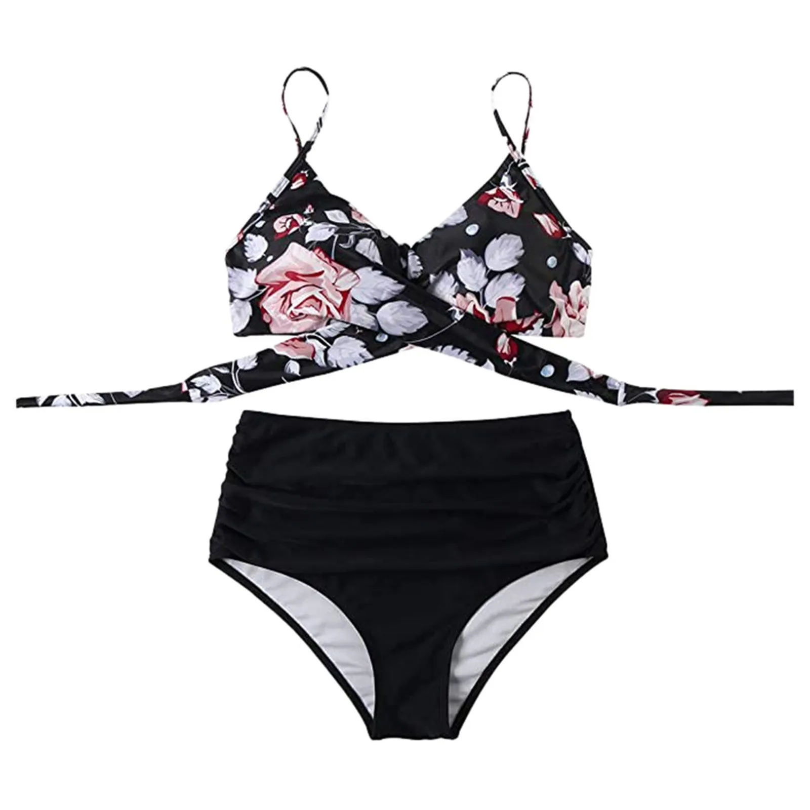 Бикини женское, 40 #, с высокой талией, с перекрестными лямками, V-...