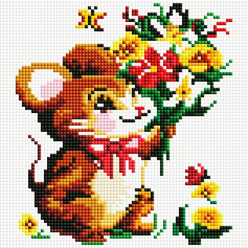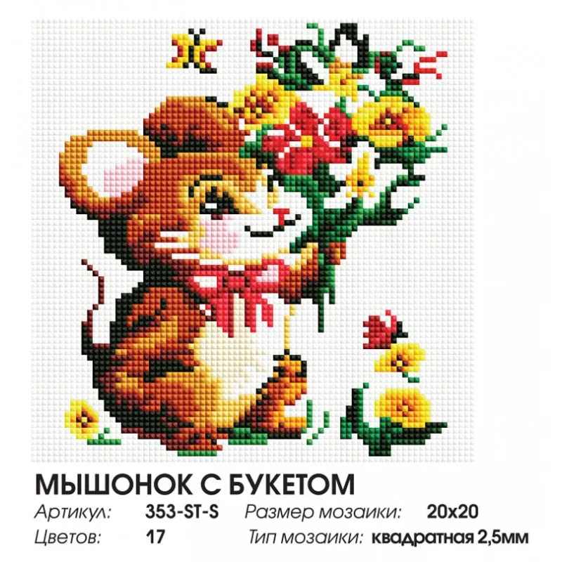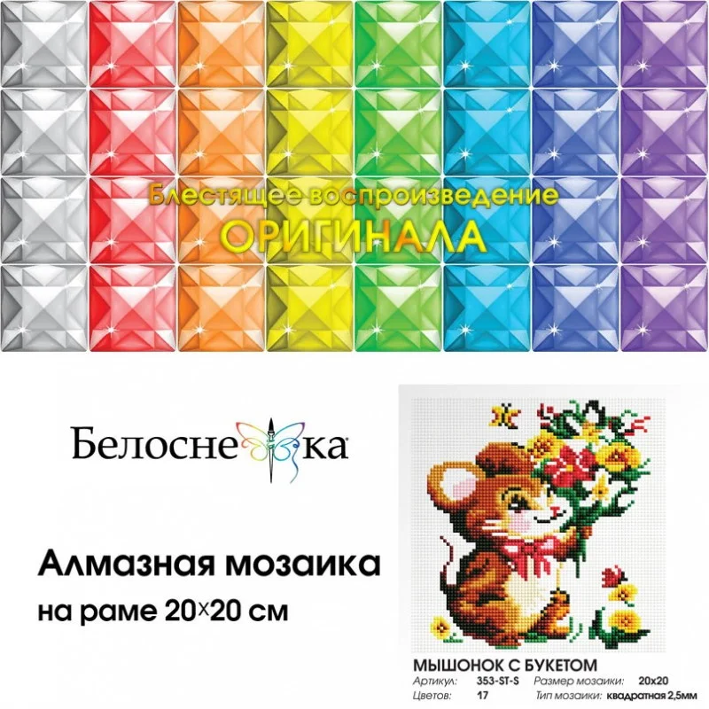 "Мышонок с букетом" Алмазная мозаика на подрамнике 20х20 см. Белоснежка. 353-ST-S