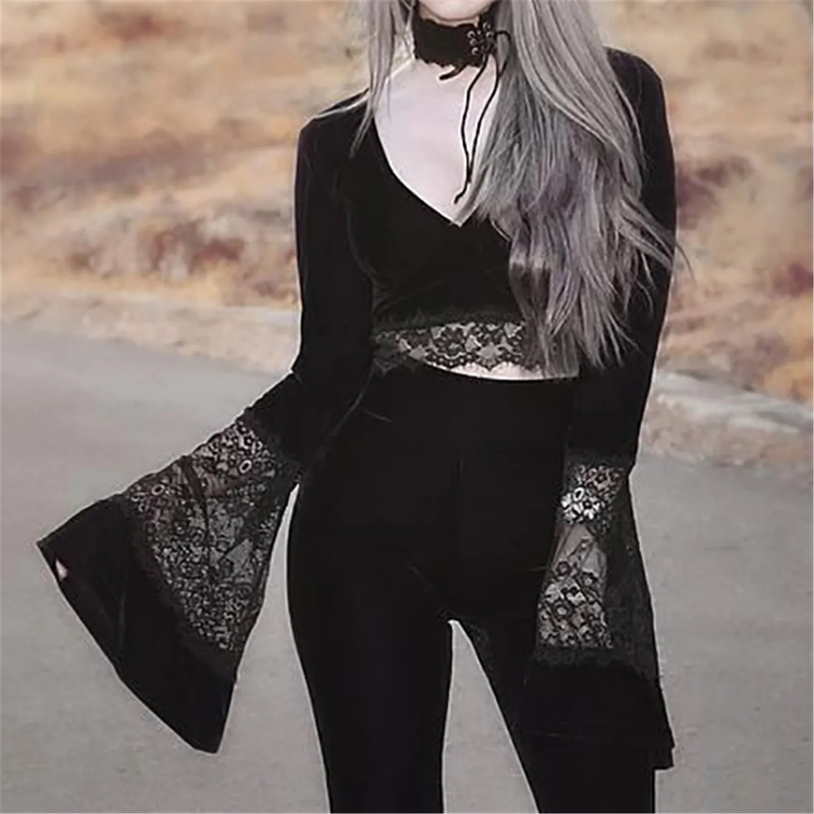 Сексуальный женский Готический укороченный топ InsGoth с расклешенн...