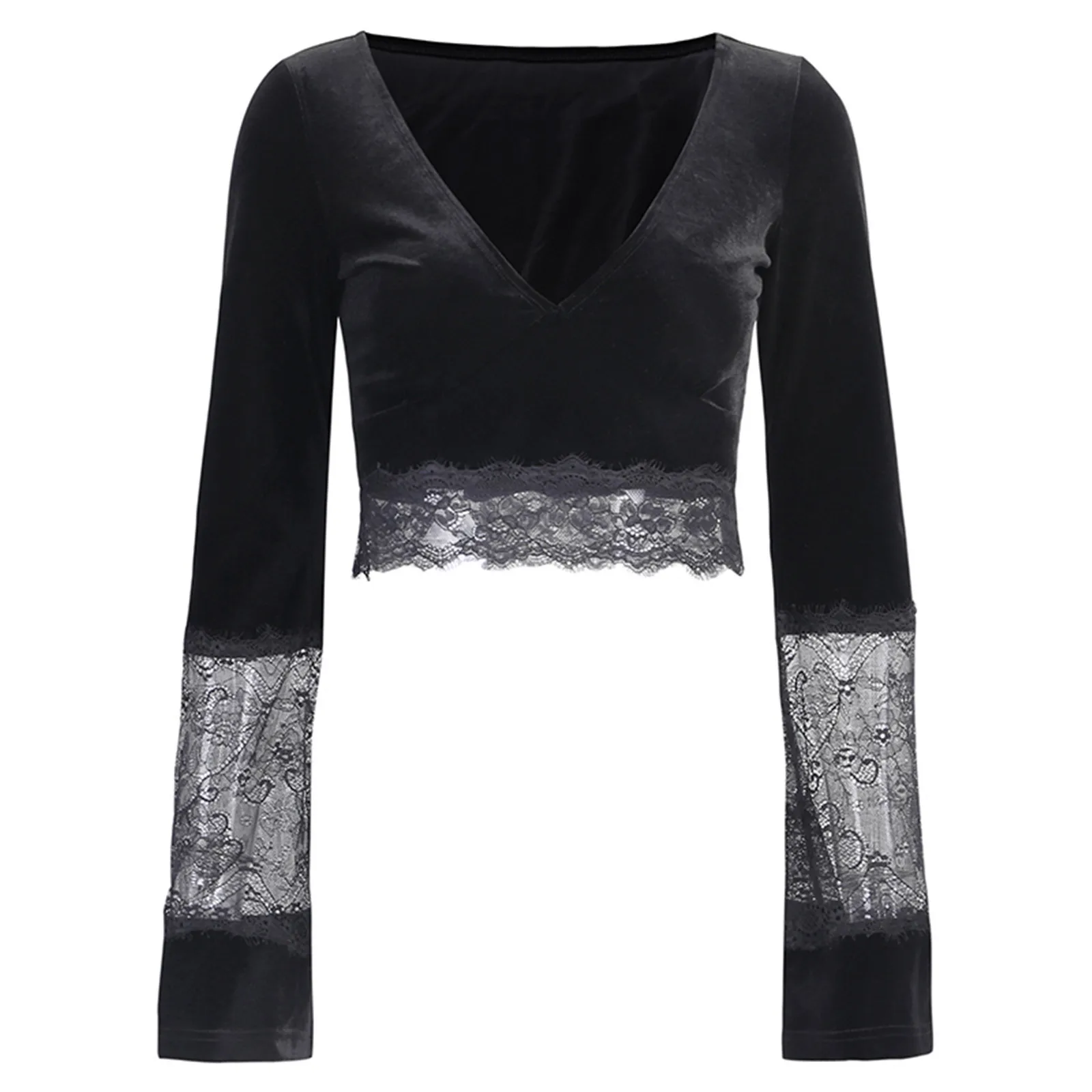 Женская сексуальная готическая ретро элегантная Черная кружевная рубашка с длинным рукавом