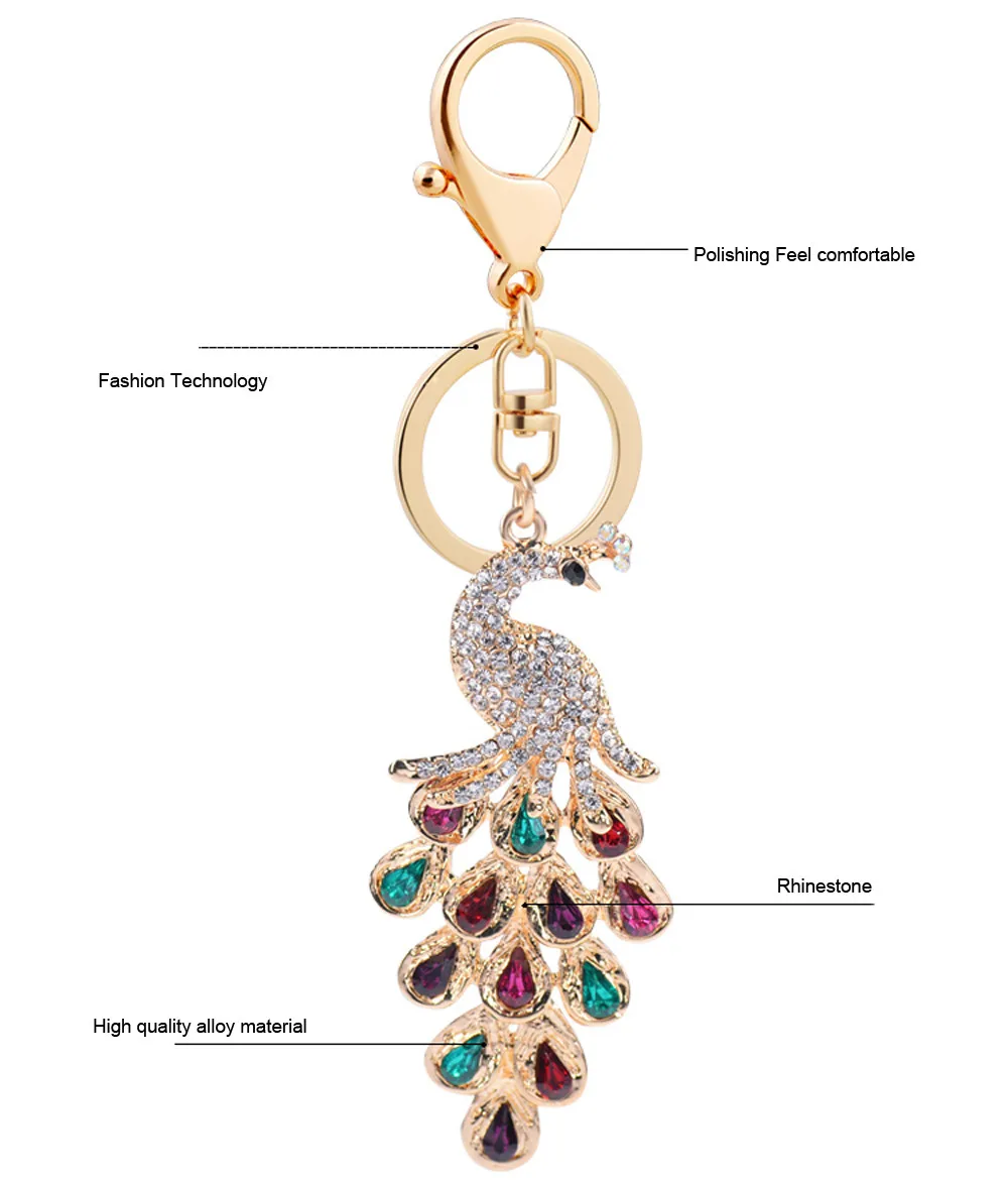 Брелок для ключей, красивый павлин брелоки со стразами для женщин, автомобильный брелок, новые модные украшения, подарочные аксессуары