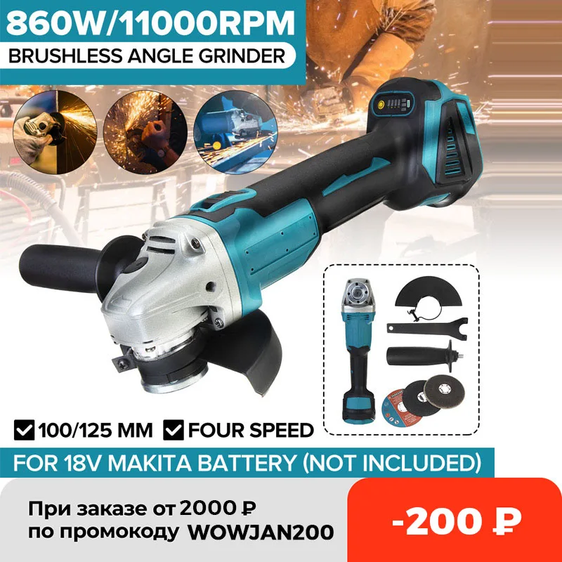 BLMIATKO новая 4-скоростная 125 мм 100 мм бесщеточная электрическая угловая шлифовальная машина деревообрабатывающее шлифование электроинструменты для батареи Makita 18 в