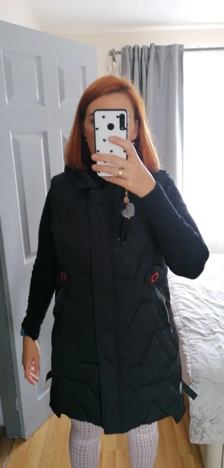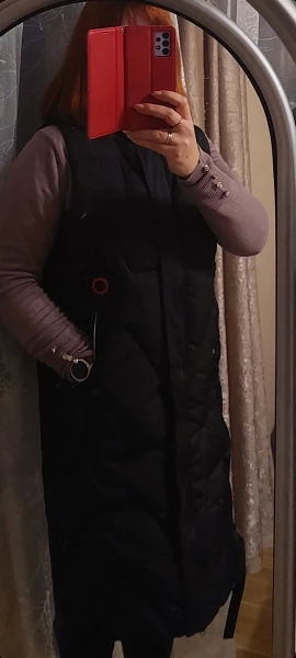 Жилет очень красивый, 4 звезды. Я не люблю ложную рекламу, это не так долго, как у девочки (она probablyvwey крошечная). Прикрывает бедра. Нитки где-то прилипают. Я ношу американский размер M, я получил L. Отлично подходит. I. Сомневайтесь, что он согреет Вас, но цена хорошая. Я не буду платить больше, чем его цена. Они отправляют его быстро.