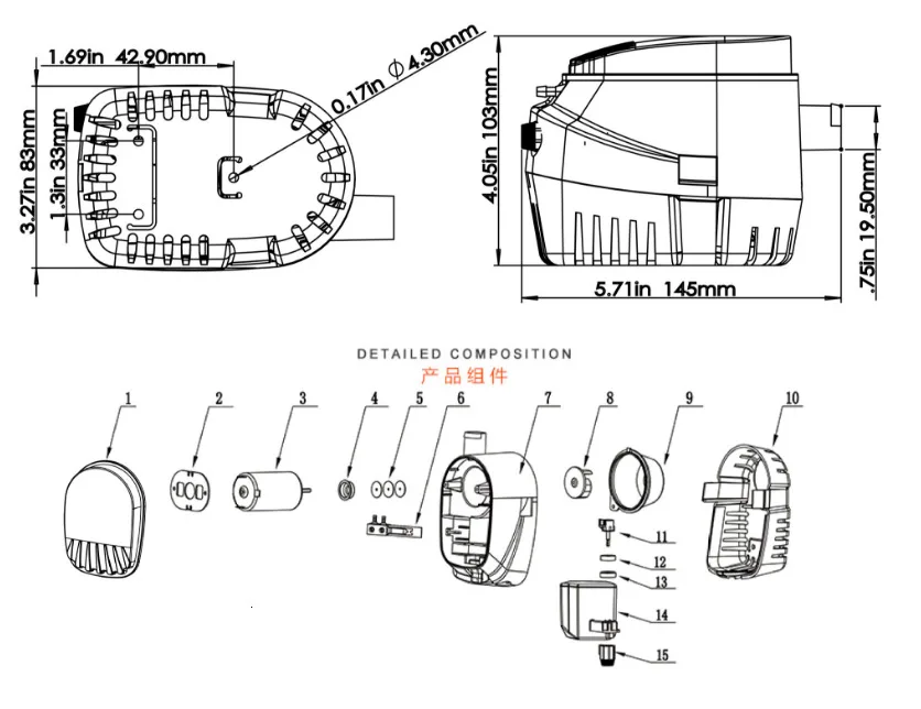 Насос водяной погружной, 12 В, 1100 Галч, с Поплавковым выключателем