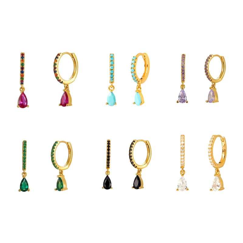 Женские серьги из серебра 925 пробы CCFJOYAS, фиолетовые, розово-красные, синие, зеленые, в виде капли воды, серьги-кольца с цирконом