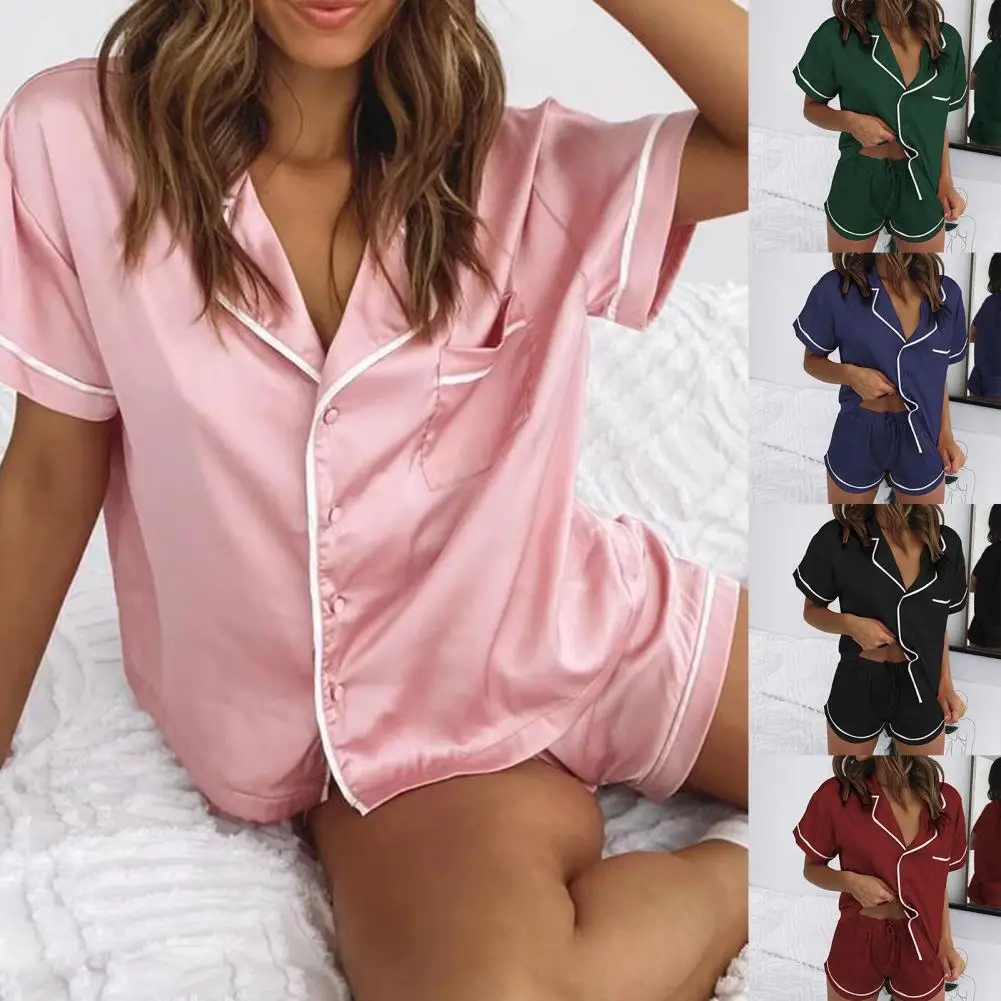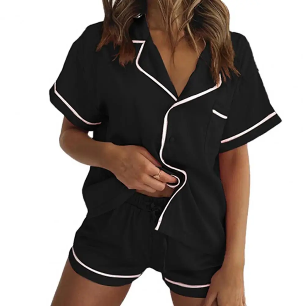 Пижама женская, комплект из двух предметов, футболка с коротким рукавом и отложным воротником, шорты, лето комплект домашней одежды, 2021