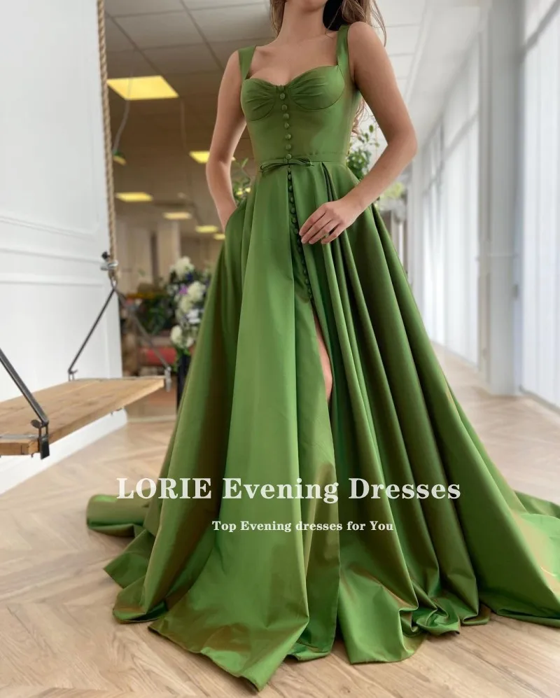 Платье для выпускного вечера LORIE, зеленое на пуговицах с высоким разрезом по бокам, с арабским бантом и поясом, для особых случаев, для вечеринок и свадеб