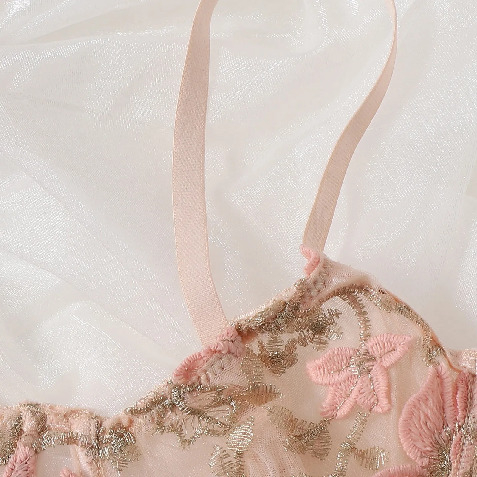 Женский комплект нижнего белья, розовый кружевной комплект с цветочной вышивкой, бюстгальтер и трусики, женское сексуальное Нижнее Белье, сексуальные стринги, женская нижняя одежда