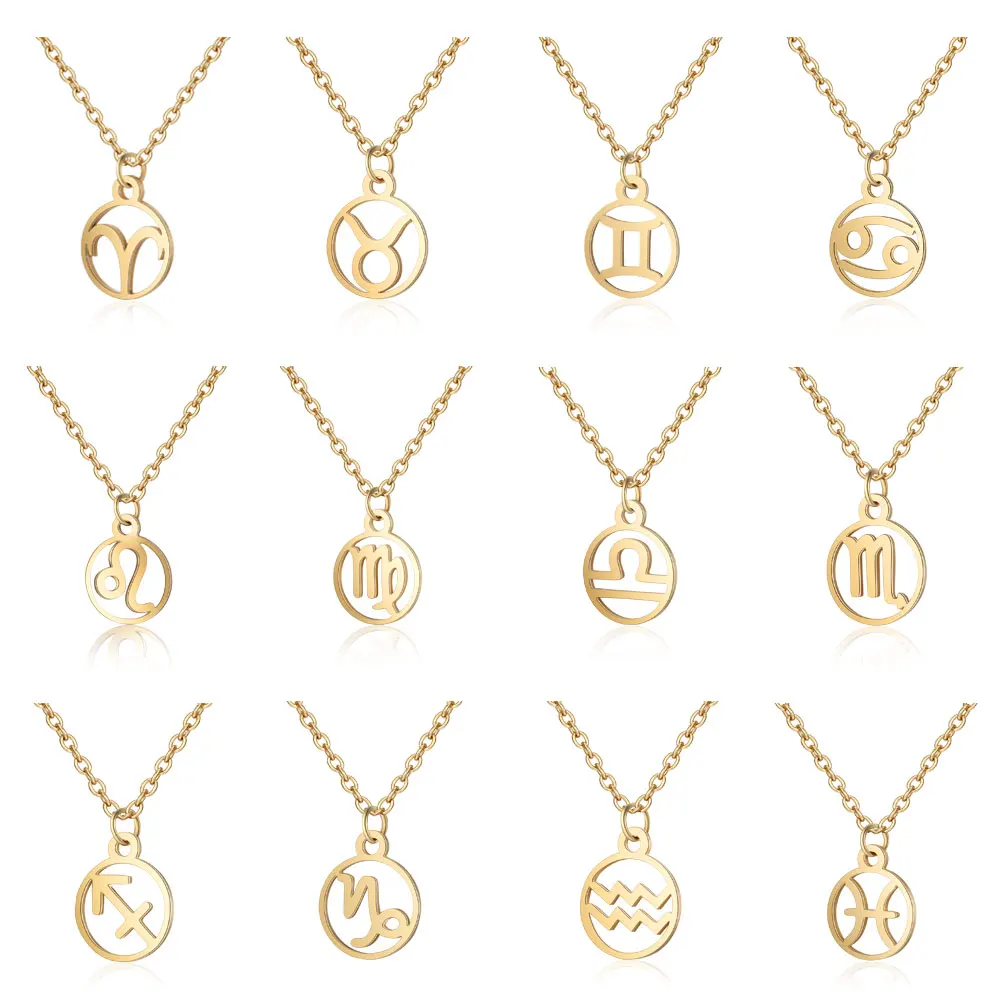 Нержавеющая сталь звездных Знак зодиака ожерелье 12 созвездий ожерелье с подвеской для женщин Золотая цепочка Ожерелье для мужчин ювелирные изделия