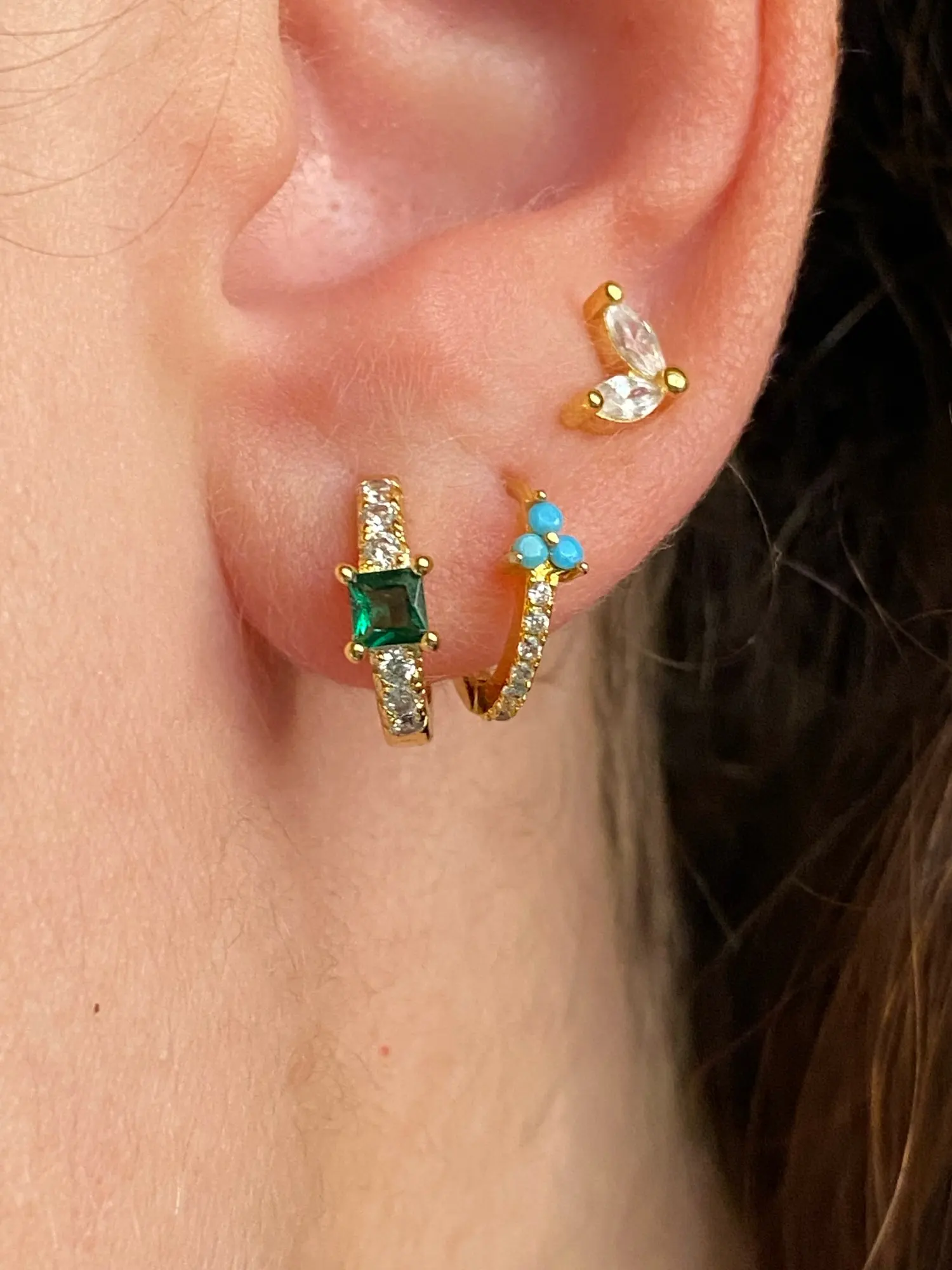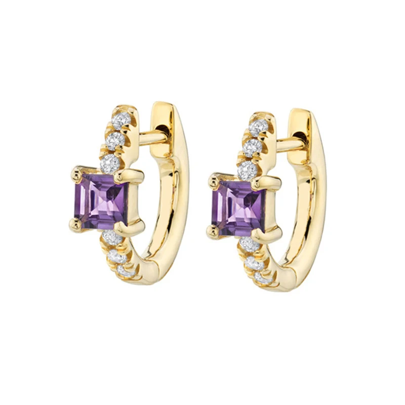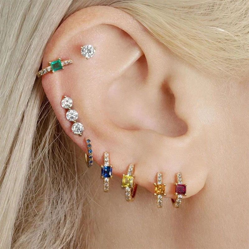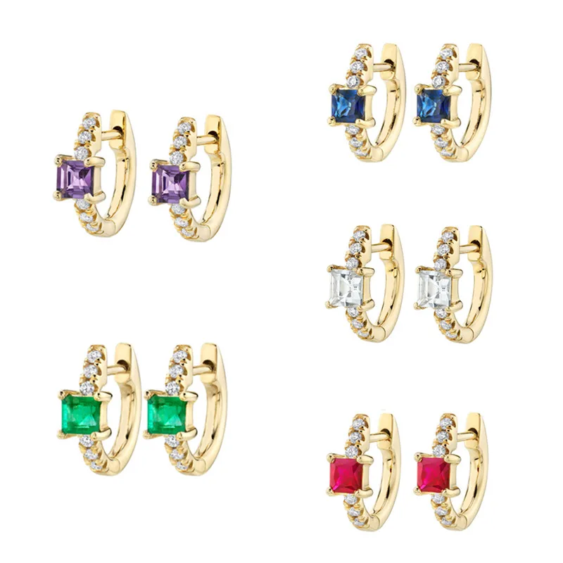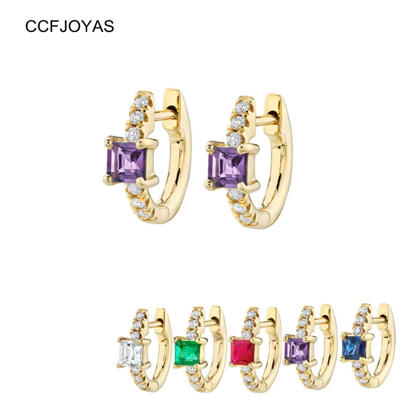 Женские серьги-кольца из серебра 925 пробы, с фиолетовымбелымзеленымсинимкрасным квадратным цирконием
