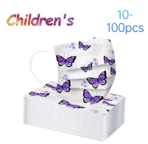 Детская фиолетовая маска-бабочка одноразовая маска для лица промышленная 3Ply маска