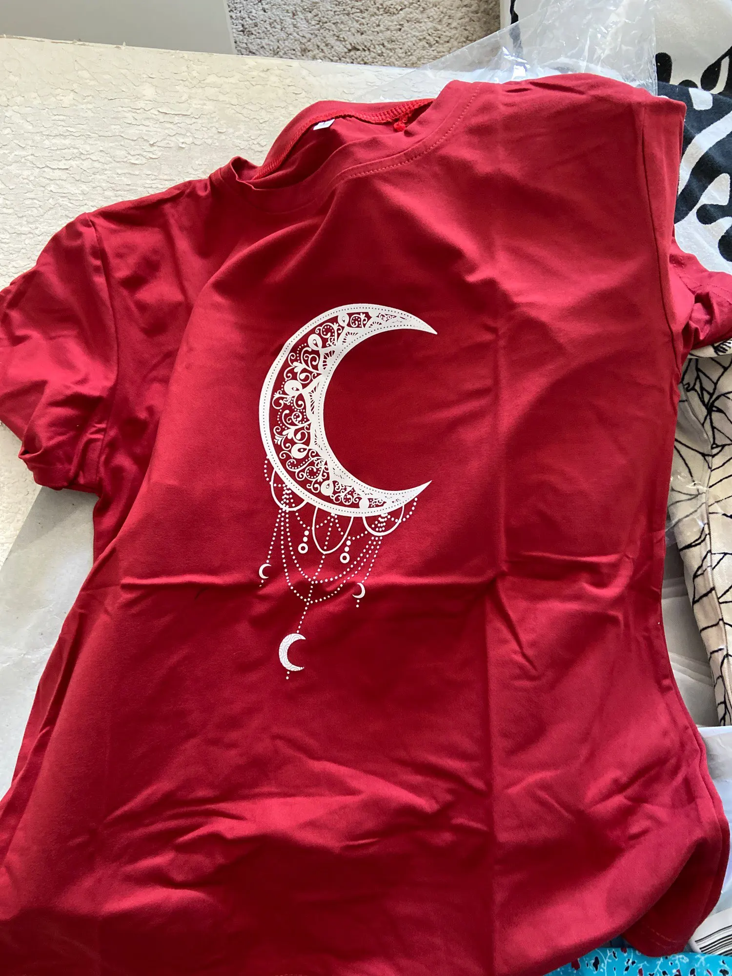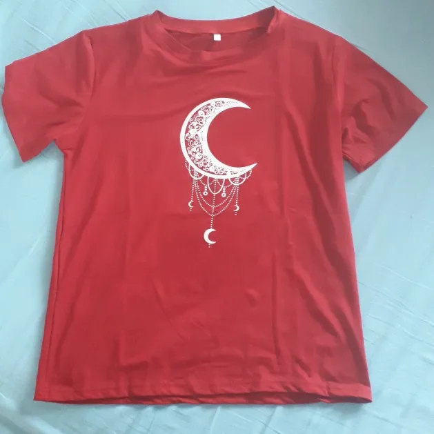 Футболка женская Sun Moon, с круглым вырезом, с принтом, с коротким рукавом, # T2P