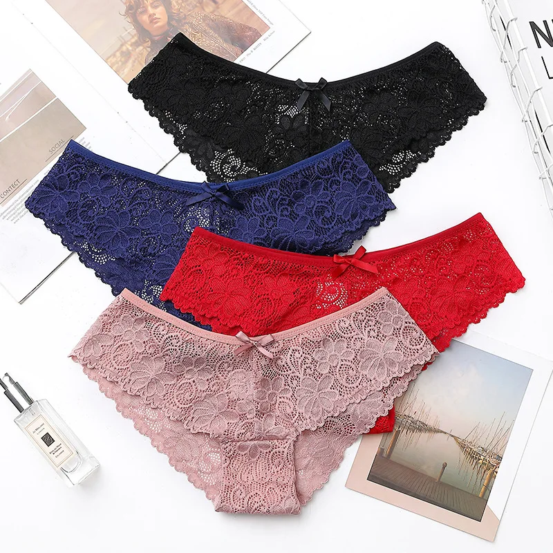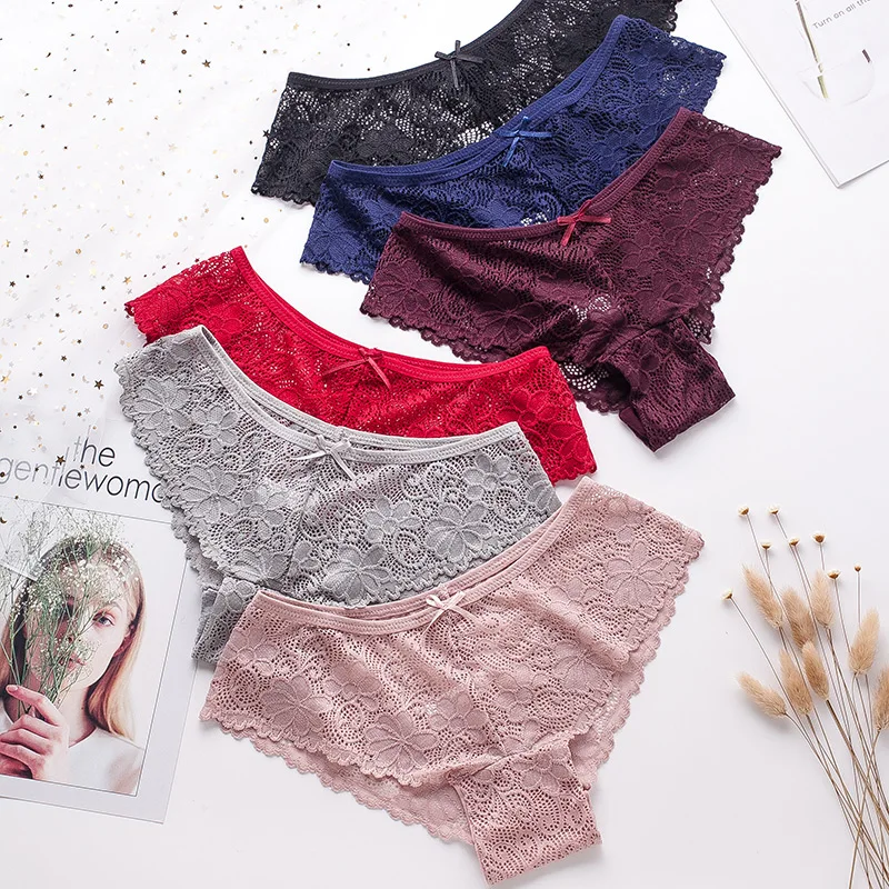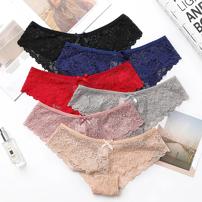 Женское кружевное нижнее белье, сексуальное дышащее нижнее белье, мягкое женское нижнее белье, Прозрачное нижнее белье с низкой талией, 3 шт.комплект