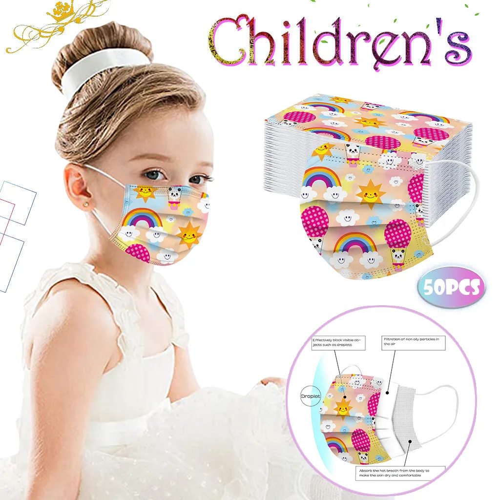 Быстрая детская маска одноразовая маска для лица промышленная трехслойная Ушная петля 50 шт. разноцветная модная маска для рта с радужным принтом