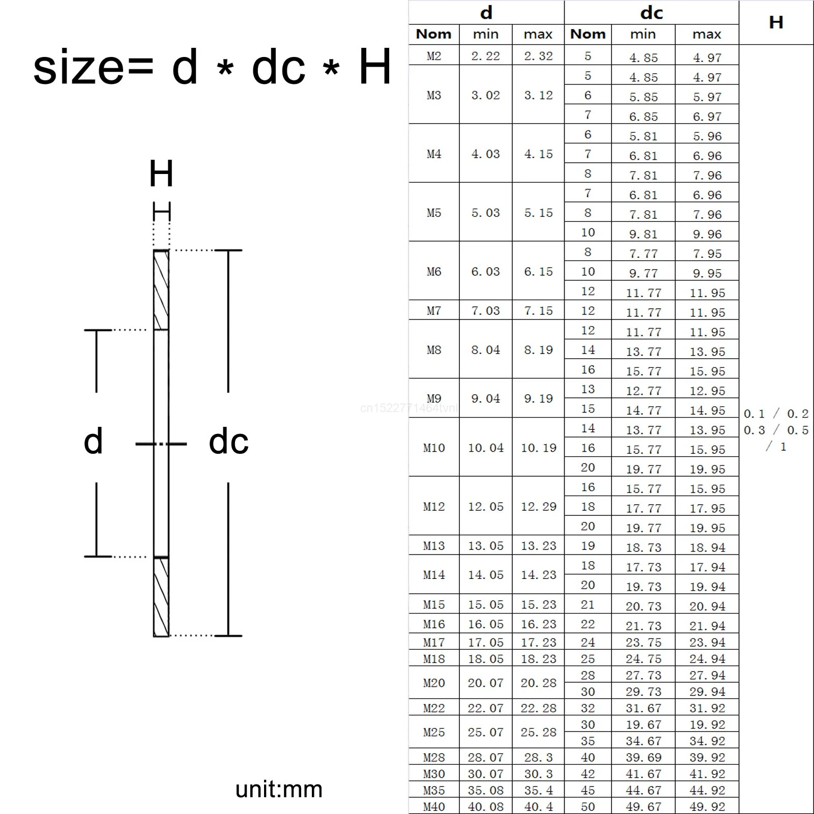 Ультратонкая плоская Регулируемая прокладка из нержавеющей стали, толщина 304, 0,1, 0,2, 0,3, 1 мм, 10P, M15-M40, DIN988, 0,5