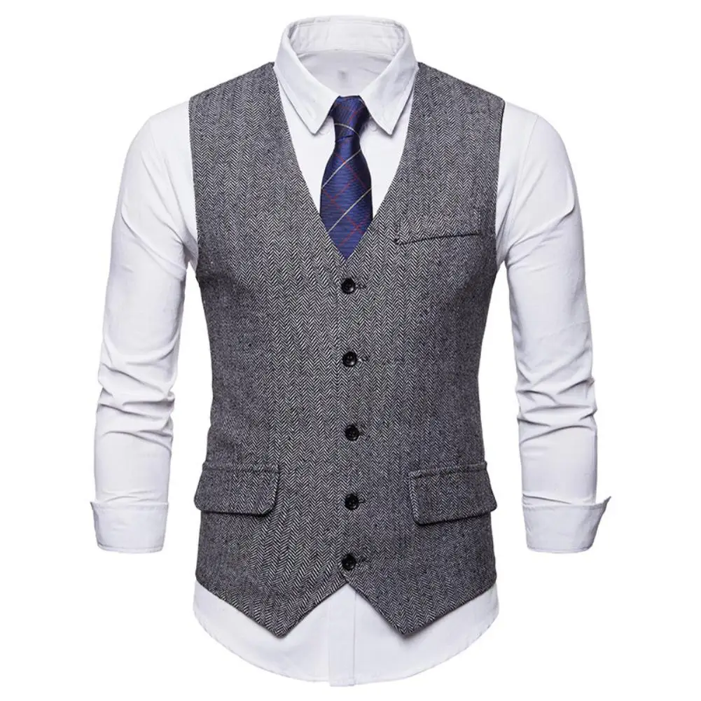 Жилет мужской с V-образным вырезом, однобортный безрукавка в елочку, деловой костюм, безрукавка