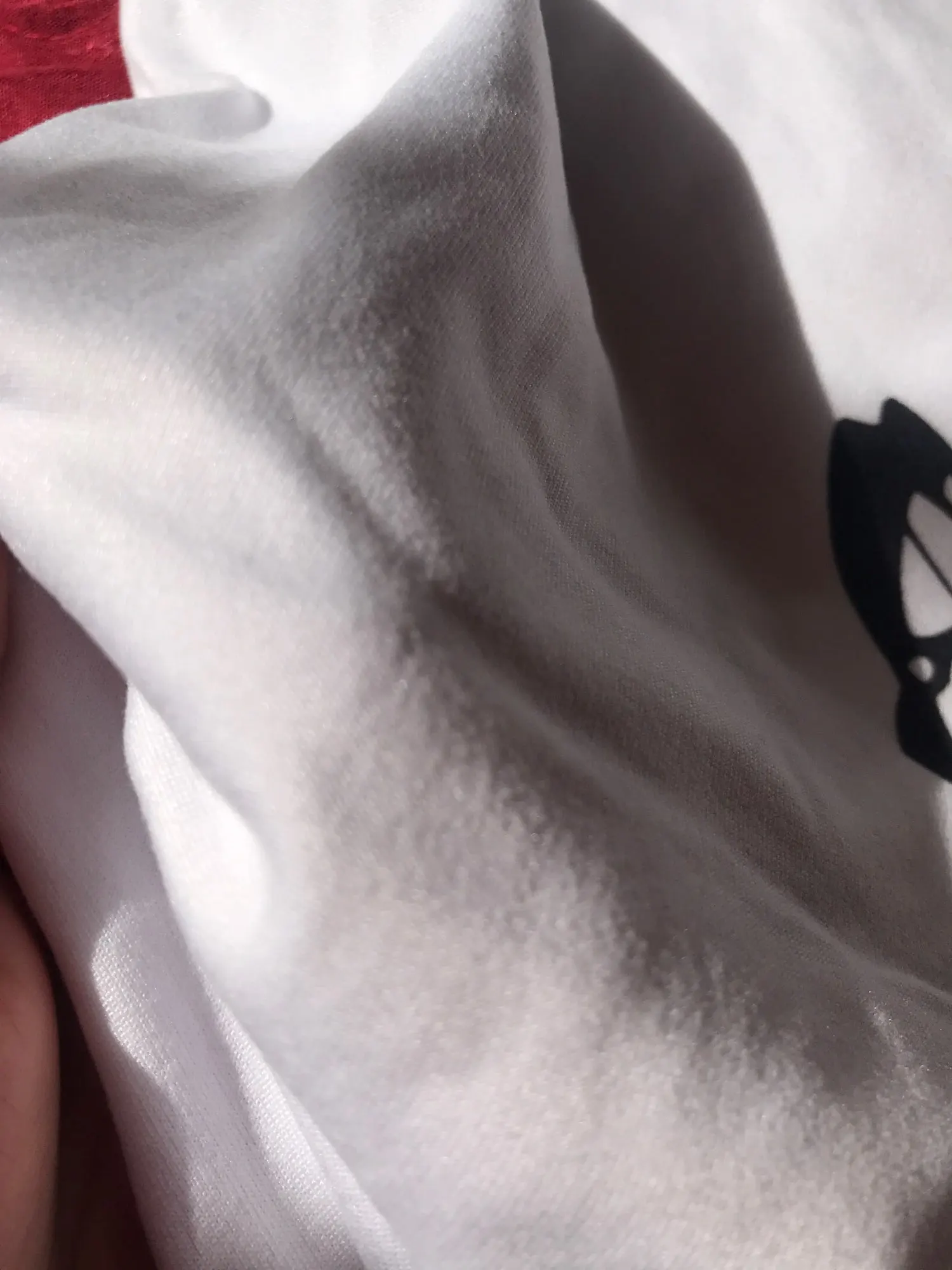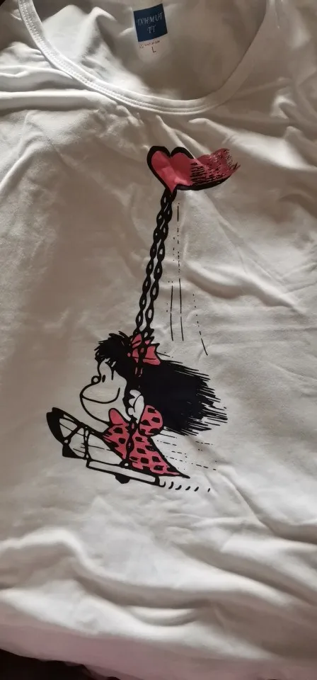 Ткань мягкая, она прибыла намного раньше, чем ожидалось, если она прозрачная, но не очень прозрачная, я использую ее с длинными рукавами внизу, и она идеальна, я рекомендую ее. (У меня было только несколько свободных нитей, ничего важного) отпечаток не приклеен, это часть рубашки все идеально