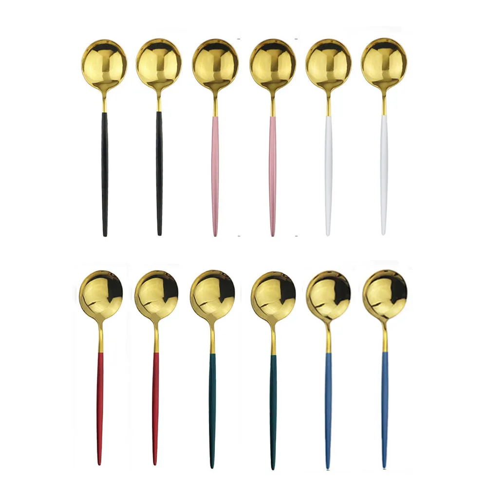6 шт Радуга Нержавеющаясталь Чай ложка Десерт Мороженое Ложки полир...