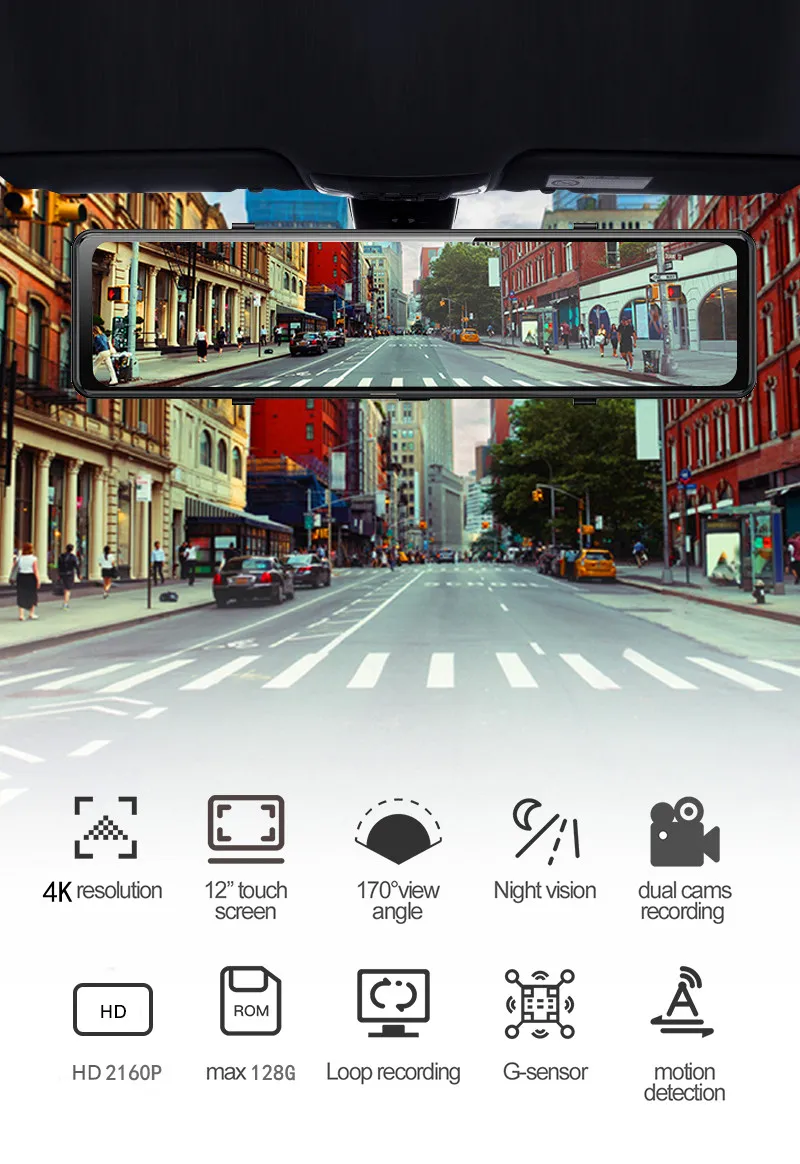 Автомобильный видеорегистратор 2160P 12 дюймов 4K Sony IMX415 камера в зеркале заднего вида FHD 1080P, задняя камера, видеорегистратор с креплением