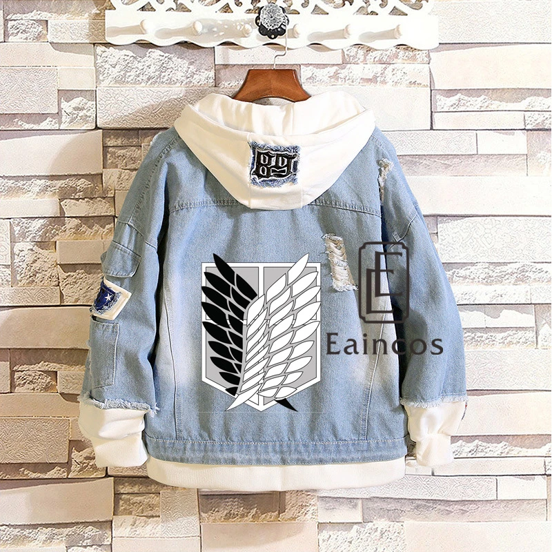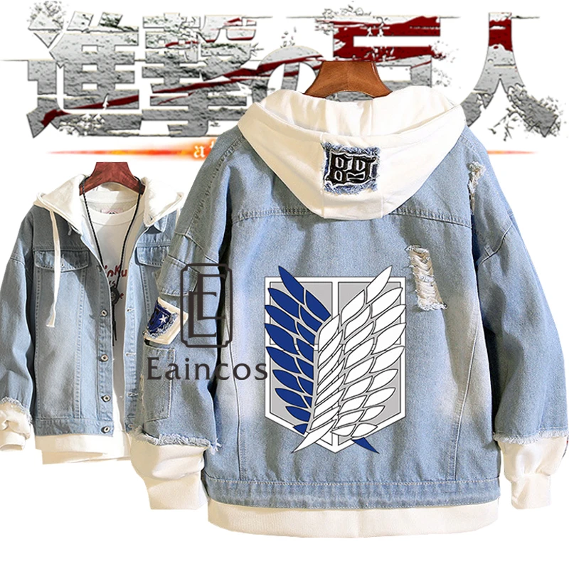 Коллекция 2021 года, джинсовая куртка атака на Титанов, джинсовая куртка для косплея разведчика, осенняя куртка Эрена, толстовка с капюшоном, верхняя одежда