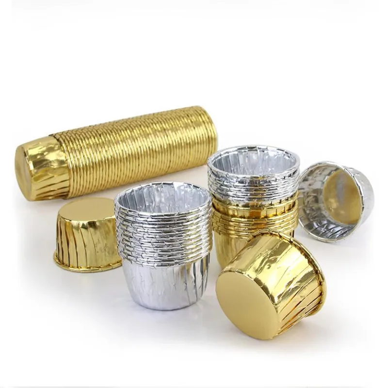 50 шт. Алюминий Фольга кекс Бумага чашки цвета: золотистый, серебри...