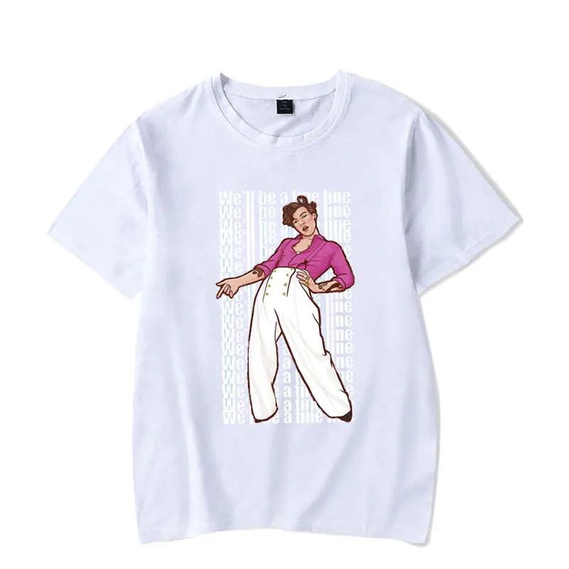 Футболка в стиле Харадзюку, Корейская футболка с тонкой линией в стиле Гарри, женские модные рубашки, футболки с коротким рукавом, топ для отдыха, повседневная женская футболка
