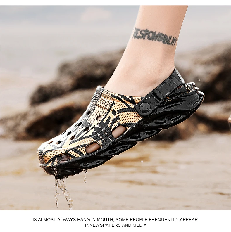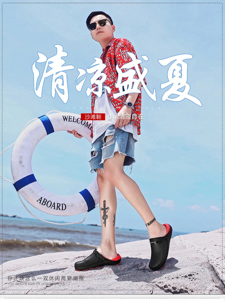 Мужские сандалии с дырками, повседневные сетчатые пляжные туфли на ...