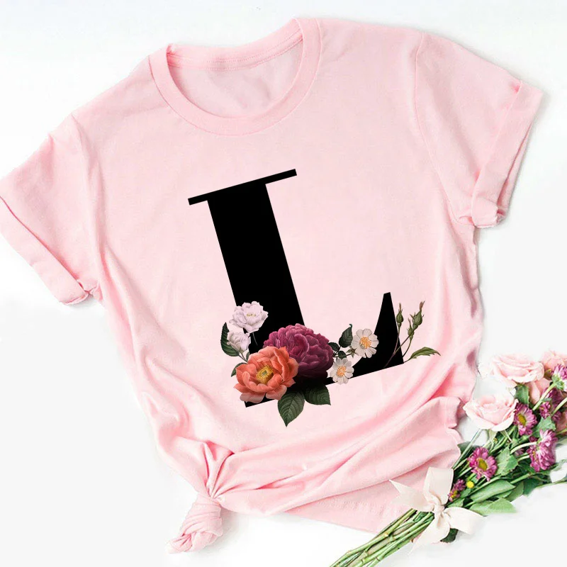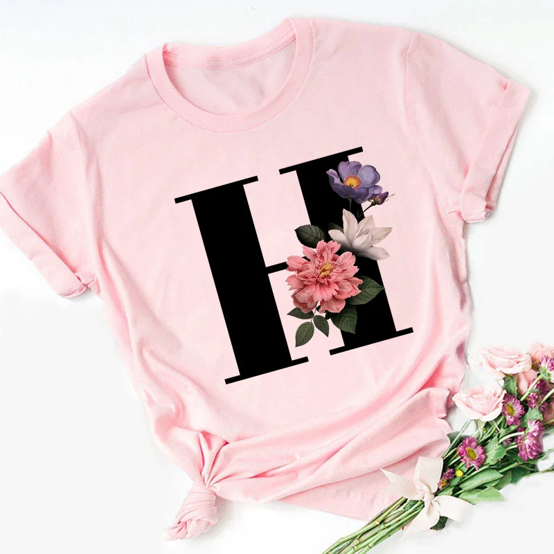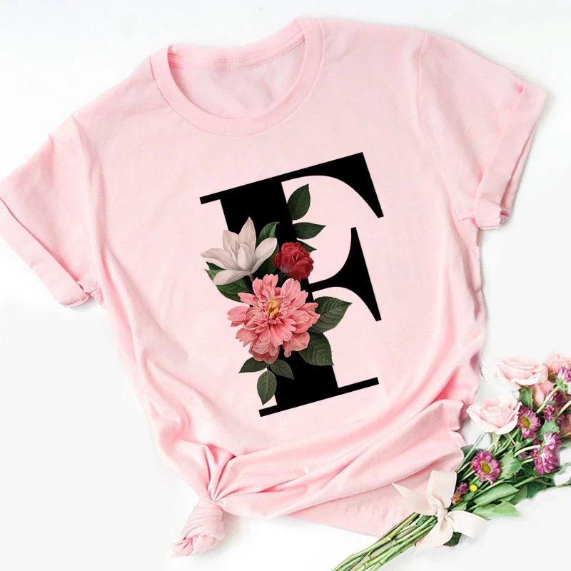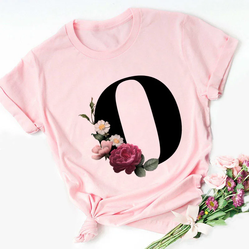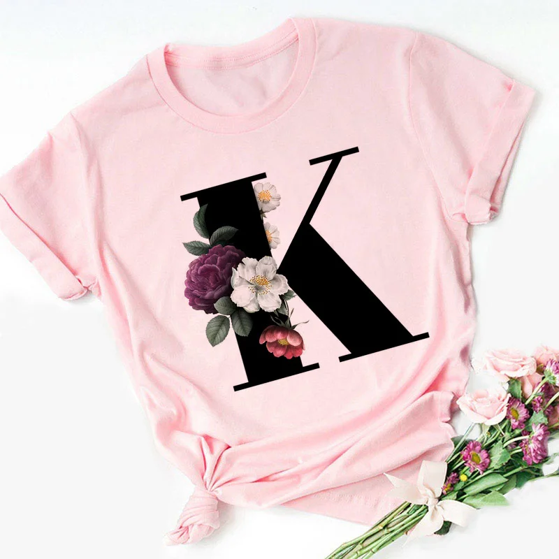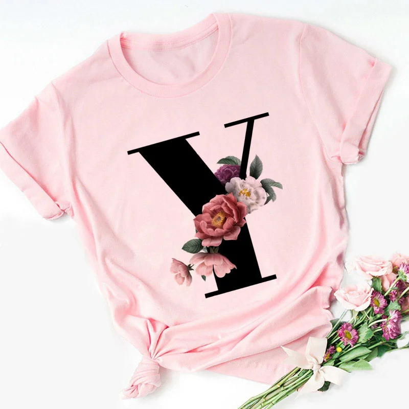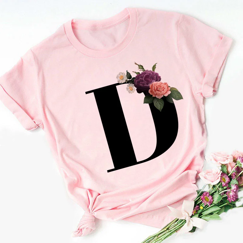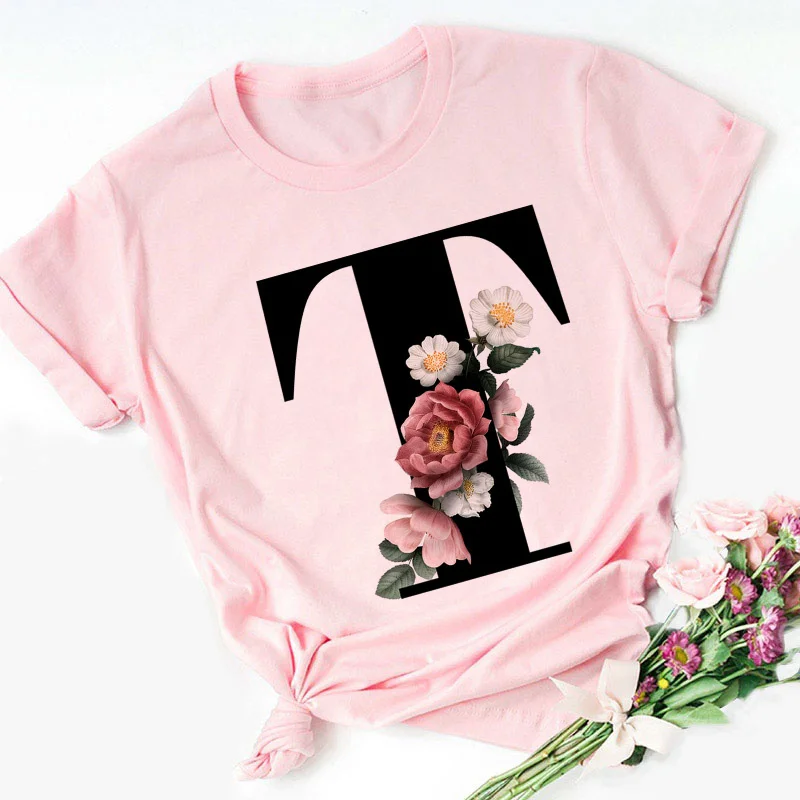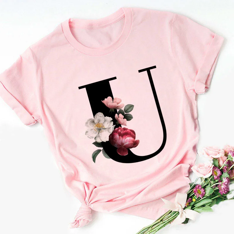 Женская футболка с надписью Английский алфавит, розовая Повседневна...