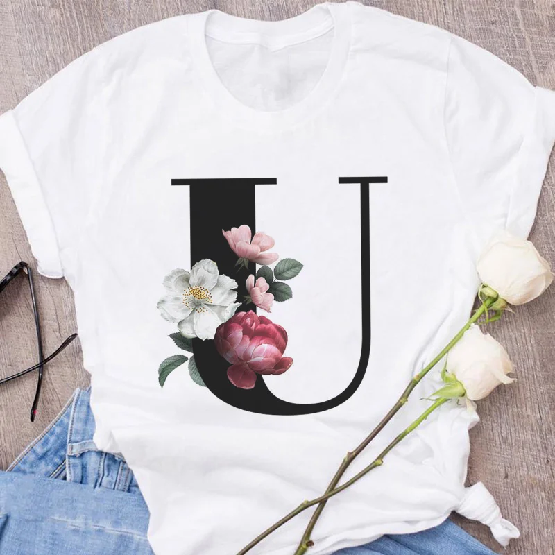Женская блузка с принтом в виде английского алфавита, белая Повседневная Блузка в стиле Харадзюку для влюбленных, 26 дюймов, лето 2021