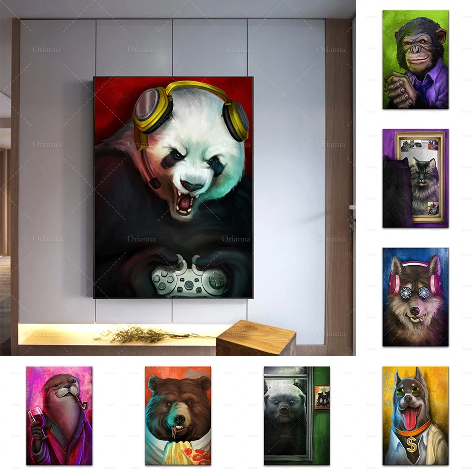 Кошка, обезьяна, кокетливая выдра, жадный догго, завистливый барсук, клеточный медведь, волк, ужасная панда, настенное искусство, Картина на холсте, печатный плакат, Декор