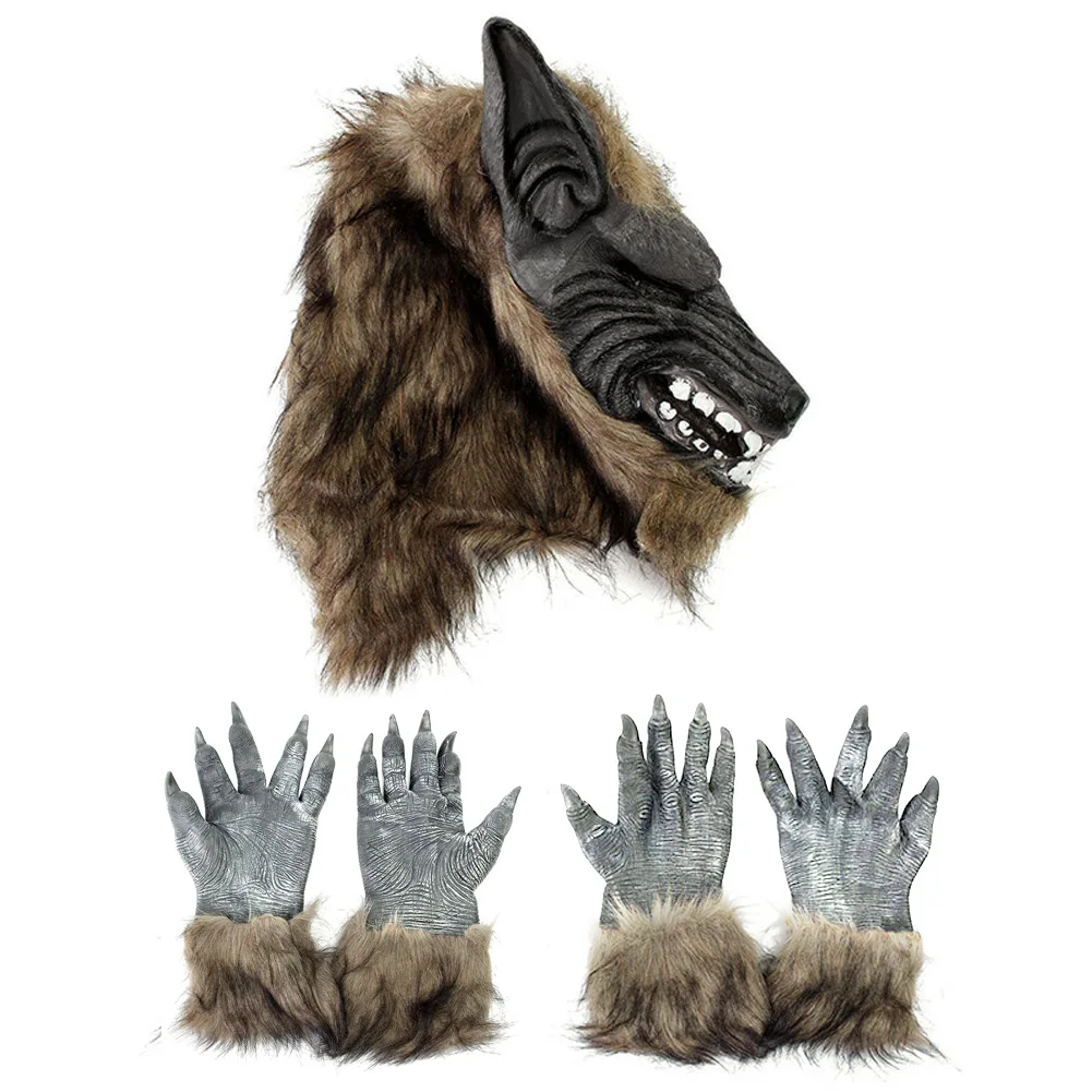 Латексная резиновая маска для волос в виде головы волка на Хэллоуин, женский костюм, страшное украшение для вечерние, головной убор в виде животного, одежда для косплевечерние