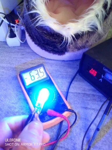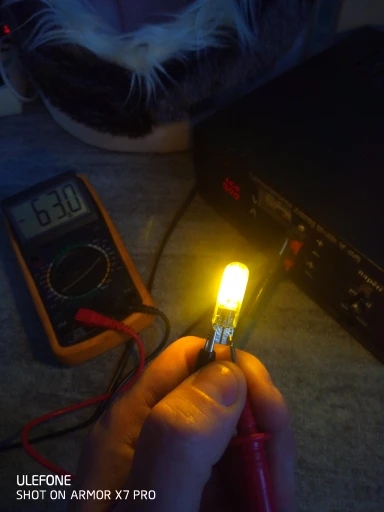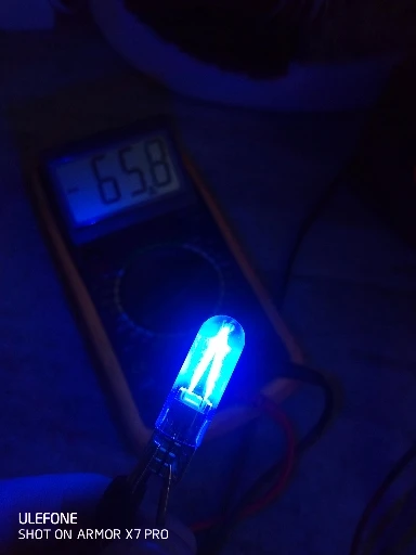 Лампа работает, светит довольно ярко. Ток 40мА, т.е. мощность примерно 0,5-0,6Вт. Качество сборки не очень. Стекло местами мутное, есть сильные царапины (но это мелочи - на работу влияет не сильно). Самый главный минус: отсутствие герметичности (чревато появлением конденсата и как следствие быстрым выходом из строя).
