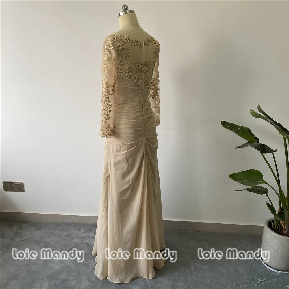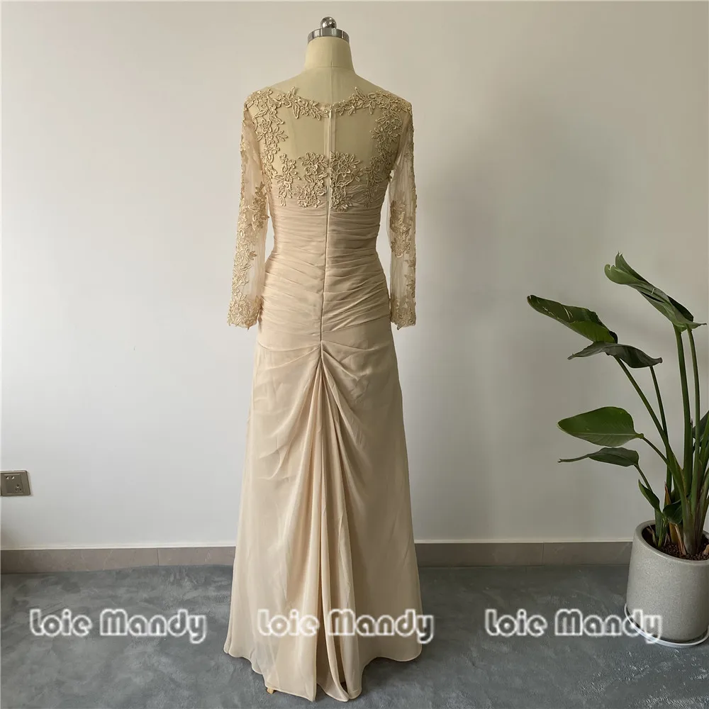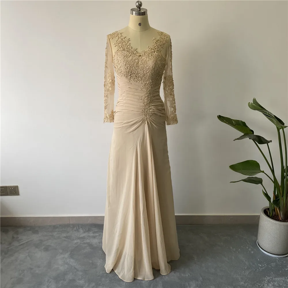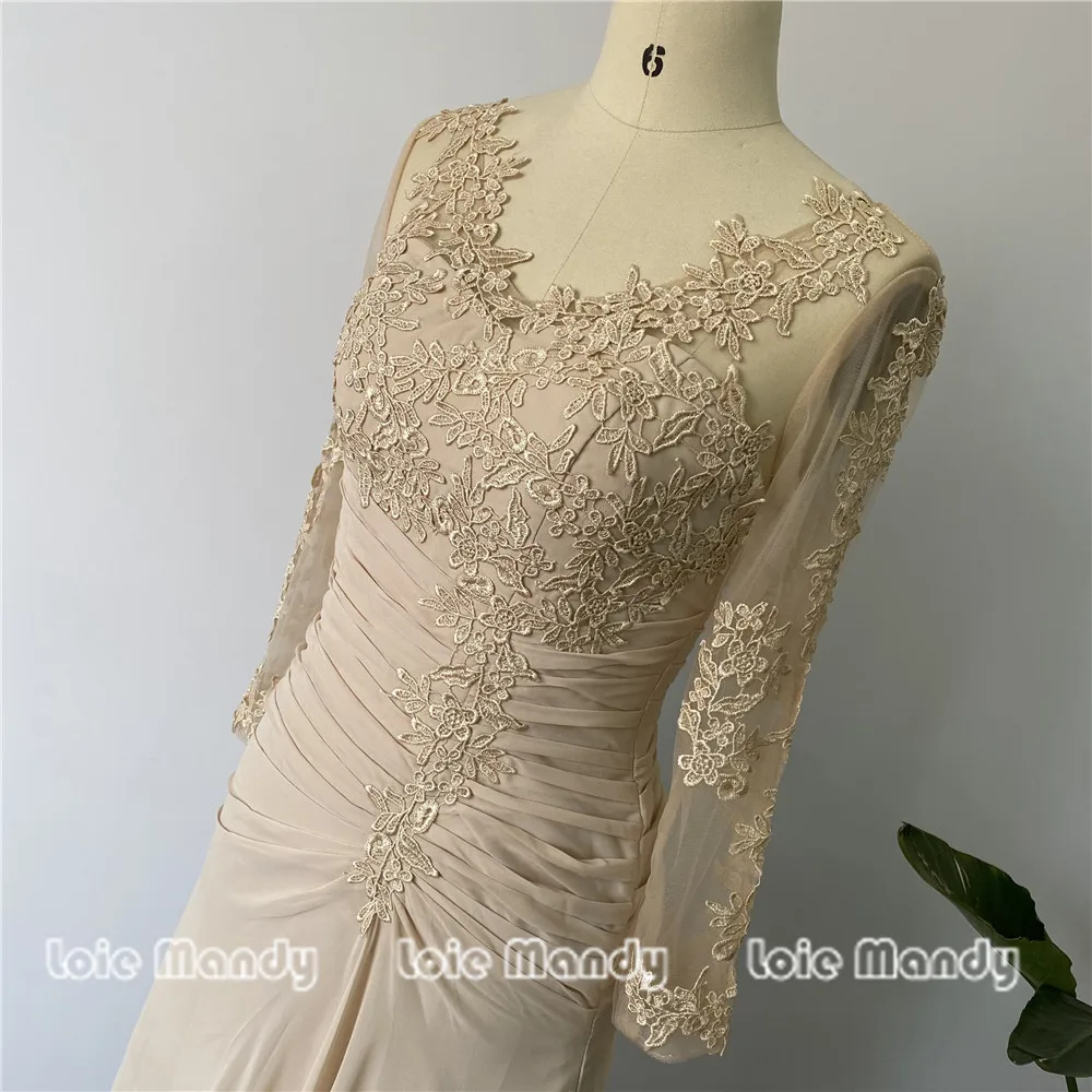 Шампанское Кружева Мать невесты платья Элегантный шифон Русалка жених мать вечернее платье для свадьбы Vestidos de fiesta