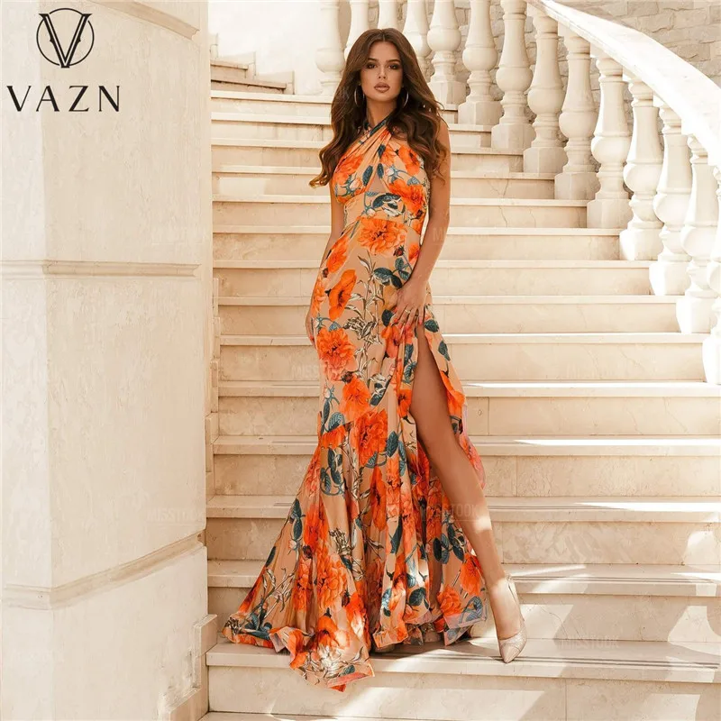 Женское шифоновое платье-халтер с высокой талией, в стиле ретро, с принтом, 2021