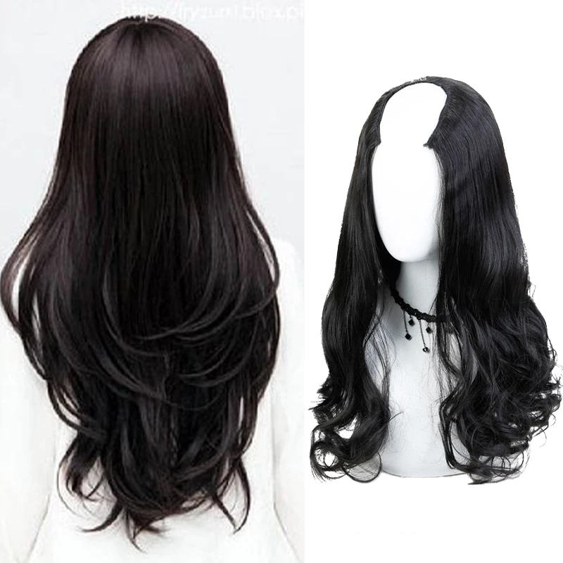 Allaosify длинные кудрявые волосы на клипсах, синтетические накладные волосы с 5 клипсами, черные коричневые, женские длинные парики
