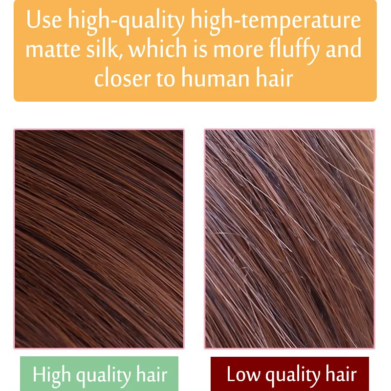 Используйте высококачественный термостойкий матовый шелк, который более пушистый и ближе к человеческим волосамСравнение высококачественных и некачественных волосВысококачественное высокотемпературное волокно/низкотемпературное волокно