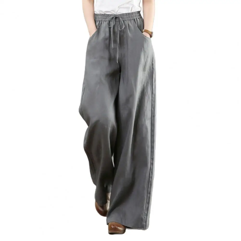 Повседневные Женские однотонные широкие брюки с высокой талией и карманами, свободные длинные брюки