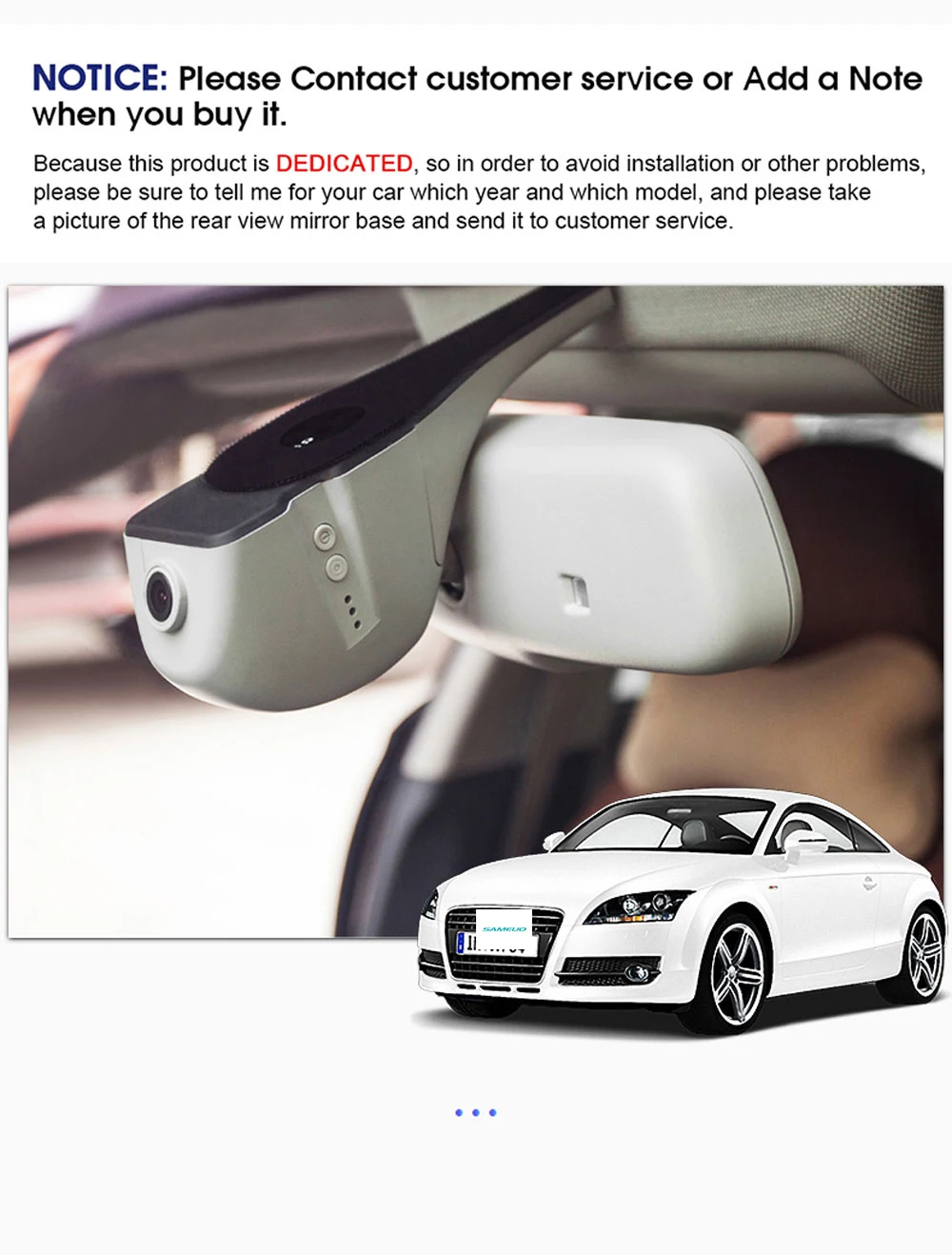 Дорогой друг,Пожалуйста, проверьте свой автомобиль внутри зеркала заднего вида и место установки, чтобы избежать ошибки, название и год модели автомобиля только для справки, потому что один и тот же бренд автомобиля в разных странах может иметь некоторые различия. Если вы не знаете, какая модель для вас, пожалуйста, пришлите нам фото заднего зеркала, фото слева, справа и сзади, мы ответим вам. ^_^.1. Имеется 3 цвета (серый/бежевый/черный), они отличаются по цвету, пожалуйста, отдайте приоритет полученным товару.2. Есть только 2 кнопки оболочки бежевого цвета, другие 2 цветные устройства с 3 кнопками.3. При заказе, пожалуйста, укажите модель автомобиля, год и цвет. (цвет s: черный, серый, бежевый.)4. Для задней камеры записи требуется дополнительная плата в размере 25 долларов СШАПодходящий тип транспортного средства:Модель A:AUDI A1 A3 A4 A5 A6 A7 Q3 Q5 Q7 с 2004 по 2012Модель B:AUDI A1 A3 A4 A5 A6 A7 Q3 Q5 Q7 с 2012 по 2015Модель C:AUDI A1 A3 A4 A5 A6 A7 Q3 Q5 Q7 с 2015 по 2018Модель D: для некоторых специальных автомобилей AudiПожалуйста, укажите это в заказе.Важное Примечание: Когда видеорегистратор работает, он постоянно считывает и записывает данные на карту памяти, поэтому ему нужна оригинальная карта памяти высокого качества. Для того, чтобы иметь счастливые покупки, мы настоятельно рекомендуем вам купить у нас карту памяти.Особенности:100% оригинальный стиль автомобиля (специальный видеорегистратор)Большая диафрагма F2.0, широкий угол 170 градусов1080 P HD видео запись, разрешение 1920*1080 пикселейSony 12 мегапиксельный датчик, шесть слоев усовершенствованного покрытия объективаВстроенный WiFi, поддержка управления через приложение iPhone, Android Phone, Android 4,4 автомобильный DVD НАВИГАЦИЯС g-датчиком, поддержка записи обнаружения движения, непрерывная циклическая записьВключение/выключение автомобиля, синхронная записьАвтоматический фокус, поддержка ночного снимкаДелитесь видео на SNS в любое время в любом местеСкачать приложение из Apple Store/Android MarketТехнические характеристикиФункция записи: Непрерывная циклическая запись открытия или закрытияСенсор: SONY (12 мегапикселей) / NovatekУгол камеры: 170 градусов широкоугольныйНочное видение: Да.Формат кодирования видео: H.265 видеоРазрешение фронтальной камеры: 1080P, 1440P, 1944P, 2160P опциональноРазрешение задней камеры видео: 1920X1080P опциональноПамять: TF карта до 64 ГБ (C10)Циклическое Воспроизведение видео: поддержкаЯзык OSD: английский, японский, французский, испанский, немецкий, португальский, итальянский, традиционный китайский, упрощенный китайскийЯзык приложения: английский, упрощенный языкУстановка:1. Следуйте инструкциям вашего автомобиля или найдите информацию в Интернете, чтобы найти свой автомобильПредохранитель, Откройте коробку с помощью пластикового инструмента (если вам нужно его использовать).2. Используйте электро-зонд, найдите мощность ACC f и постоянную мощность f, мыРекомендуется использовать лампы для чтения, фары, задние лампы, поворотники, окна питанияПредохранитель для обеспечения постоянной мощности (если они являются предохранителем постоянной мощности).Питание ACC: когда вы подключите ключ автомобиля, затем поверните его к ACC, питание будет работать. Если выПоверните ключ автомобиля, чтобы заблокировать или отключить автомобиль, питание будет выключено. Подключите красный провод(ACC) с предохранителем питания ACC.Постоянная мощность: Подключите или отклю