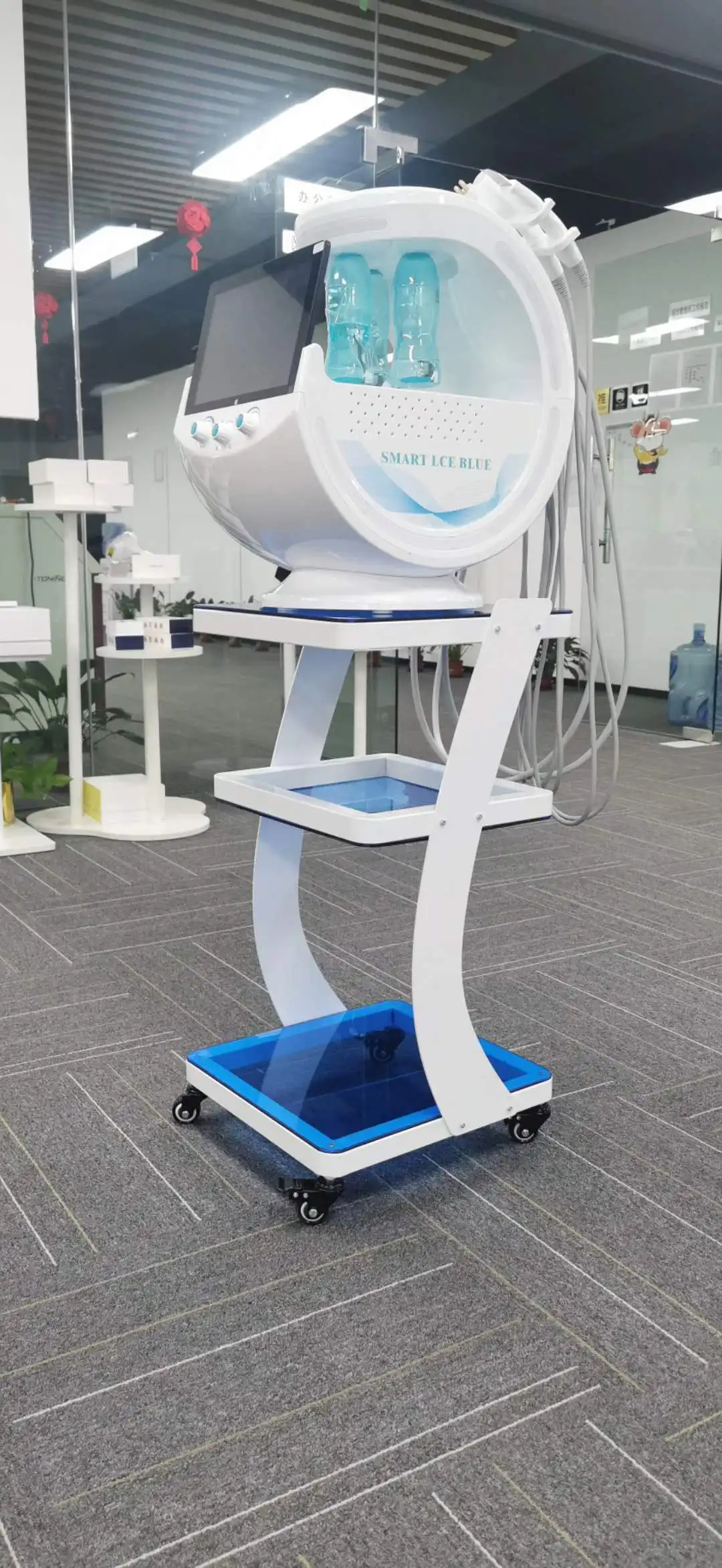 Интеллектуальная система управления СИНЕЙ КОЖЕЙ (далее-«этот продукт») собирает изображения кожи лица через 10 миллионов пикселей высокой четкости микро-диапазон камеры в сочетании с тремя спектральными технологиями визуализации, с помощью интеллектуальной диагностики и анализа ядра искусственного интеллекта двигателя, 8 размеров для обнаружения проблем с кожей, И согласно результатам диагностики частной индивидуальной программы по уходу за красотой и умной рекомендации профессиональных средств по уходу за кожей; В сочетании с методами «ультразвуковой нож-Лопатка», «Пузырь», «нано распыление», "Ультразвуковая волна","Золотая радиочастота","Ремонт льда" и так далее, Шесть функций красоты высокой конфигурации всесторонне управляют кожей, сочетают результаты диагностики кожи AI с продуктами по уходу за кожей и другими предметами по уходу за кожей, И разработать многофункциональное Интегрированное Оборудование для обнаружения кожи и управления.