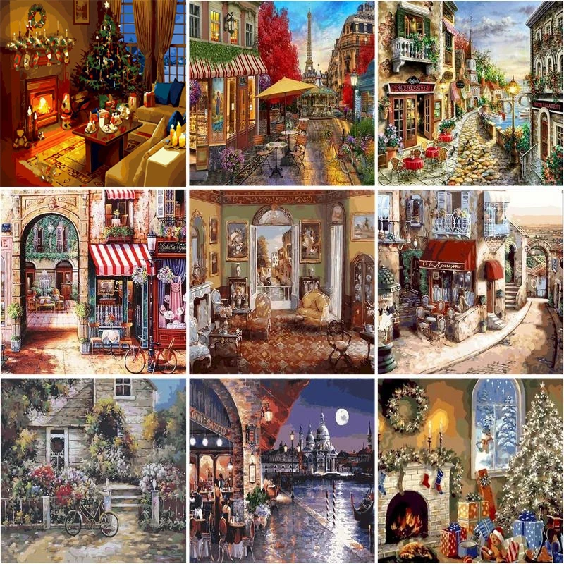 Краска по номерам RUOPOTY, городской уличный рисунок на холсте, ручная роспись, искусство, подарки, картины сделай сам, наборы с цифрами, ландшафт, домашний декор