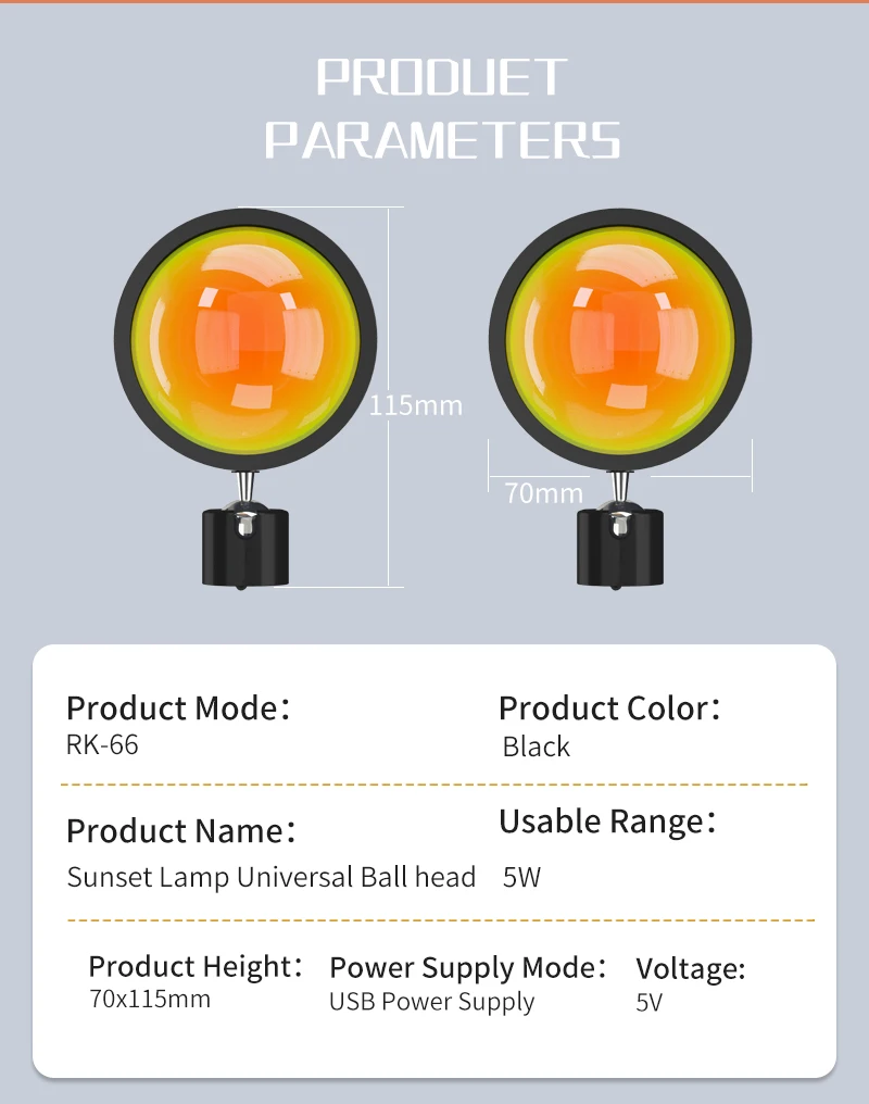 ОписаниеПроекционный светильник-это уникальный цветной проектор, который может расширить чувство пространства и мягко осветить окружающую среду и создать визуальную медитацию. СВЕТОДИОДНЫЙ торшер надеется привнести новые предметы в домашний пейзаж, который можетСоздайте мир цветов.ОсобенностиПроекционный светильник-Цвет: черный и серебристый отправляется случайным образом-Материал: Цоколь из поликарбоната + железо-Арт.-Размеры: 12x12x32.5 см/4,72x4,72x12,8 дюймов; Usb-разъем: 120 см/47,24 дюймов.-Напряжение: 5 В.Тип проекционного рисунка: Радуга, закат, солнце.Чем дальше расстояние, тем больше проекция, которую может проектировать проекционный светильник на стене или потолке.Примечание:Допускается погрешность в 1-3 см, так как измерения выполнены вручную.Посылка:1 * Светодиодный ночной Светильник1 * USB кабель