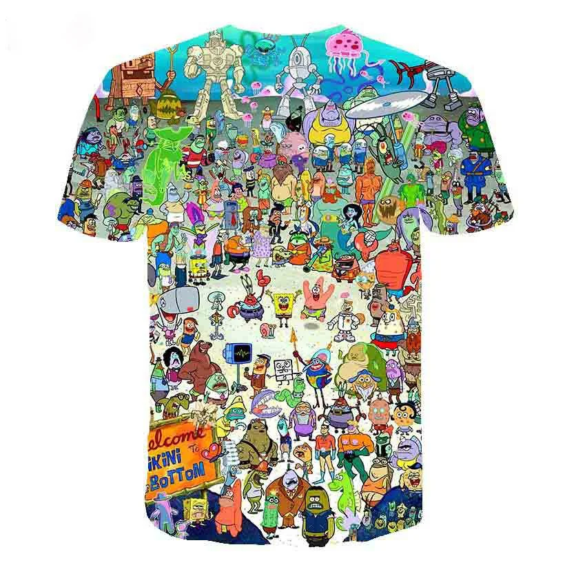 Лидер продаж, детская одежда, одежда с 3D принтом из мультфильмов, одежда для девочек и мальчиков, Классическая футболка из аниме Губка Боб, Camiseta, детская одежда, футболка